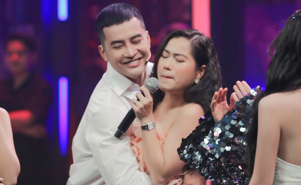 Trước màn thể hiện tình cảm từ trai đẹp, bà xã Hứa Minh Đạt ngại ngùng đẩy đàn em ra và nói: “Chị có gia đình rồi, hãy buông chị ra”.