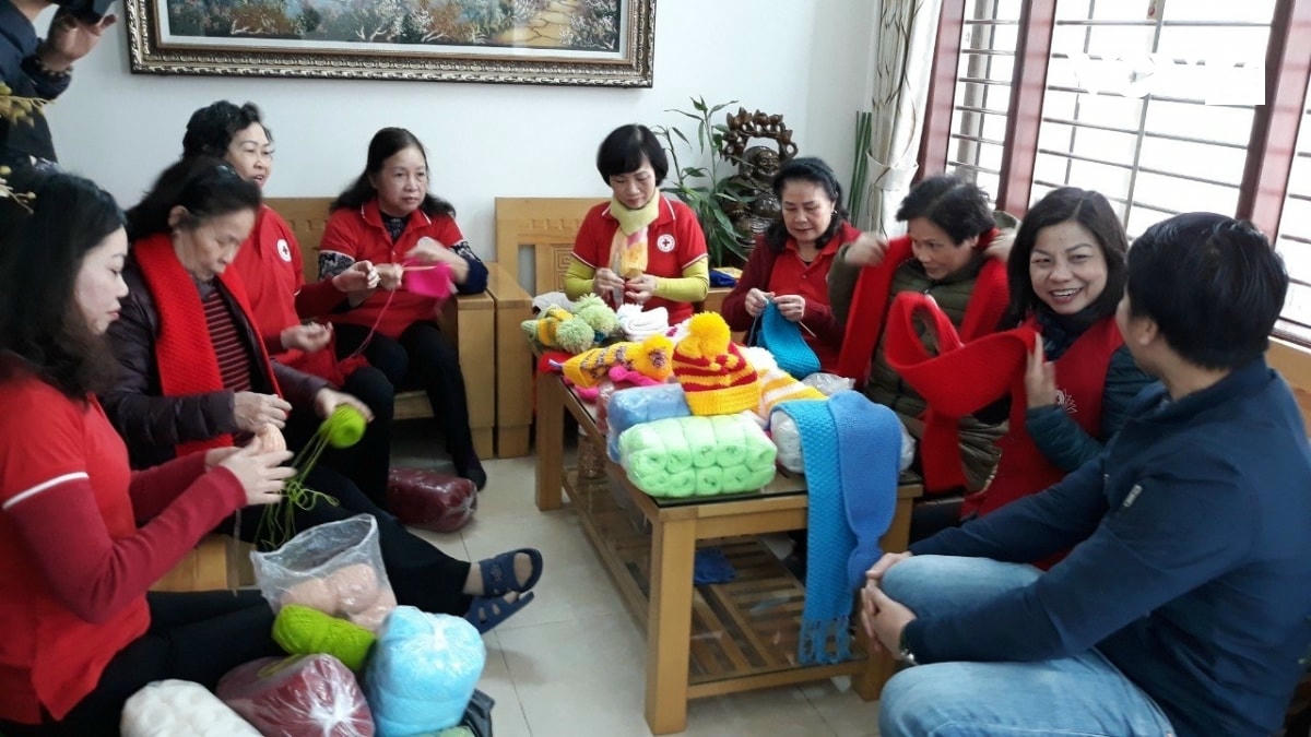 Trong căn nhà nhỏ của bà Thành Thị Hoàn ở phố Vương Thừa Vũ, Khương Trung, Đống Đa, Hà Nội thường rôm rả tiếng trò chuyện, hát hò của Tổ đan len “Khăn ấm tình thương”. Gần 10 phụ nữ vừa thoăn thoắt tay đan vừa chuyện trò việc gia đình, con cháu... Các bà đều là thành viên Hội chữ thập đỏ và Hội phụ nữ phường Khương Trung. Những ngày đầu thành lập các bà bỏ đồng lương hưu ít ỏi ra mua len, rồi cặm cụi từng đường kim, mũi chỉ.