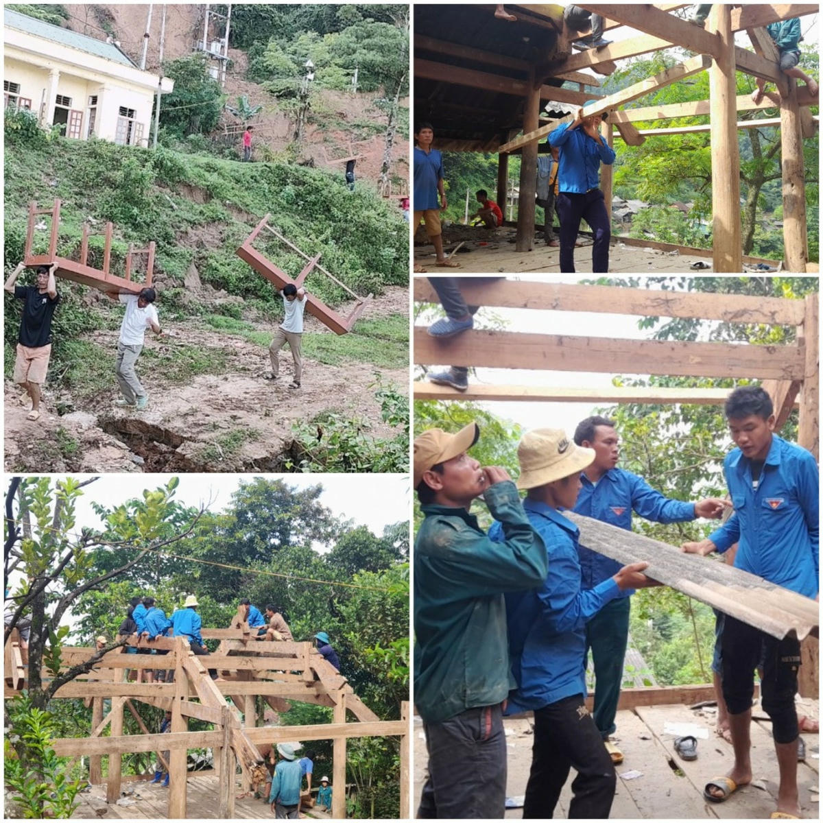 Những ngày này, dọc các tuyến đường xã Bảo Nam không chỉ nhộn nhịp cảnh cứu trợ, mà nhiều tổ chức, đoàn thể cũng chung tay hỗ trợ người dân tháo dỡ, di dời nhà cửa khỏi những khu vực đang có nguy cơ sạt lở đất. Những ngôi nhà sàn được tháo dỡ, đem đi cất giữ cẩn thận trong thời gian chờ được bố trí đất để dựng nhà mới. Thời gian này, nhiều gia đình đành phải dựng lán trại để ở tạm.