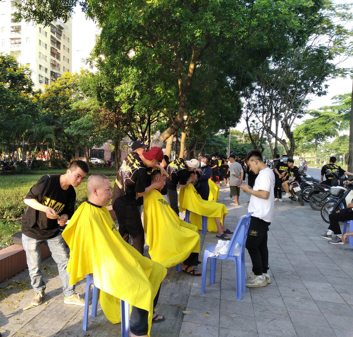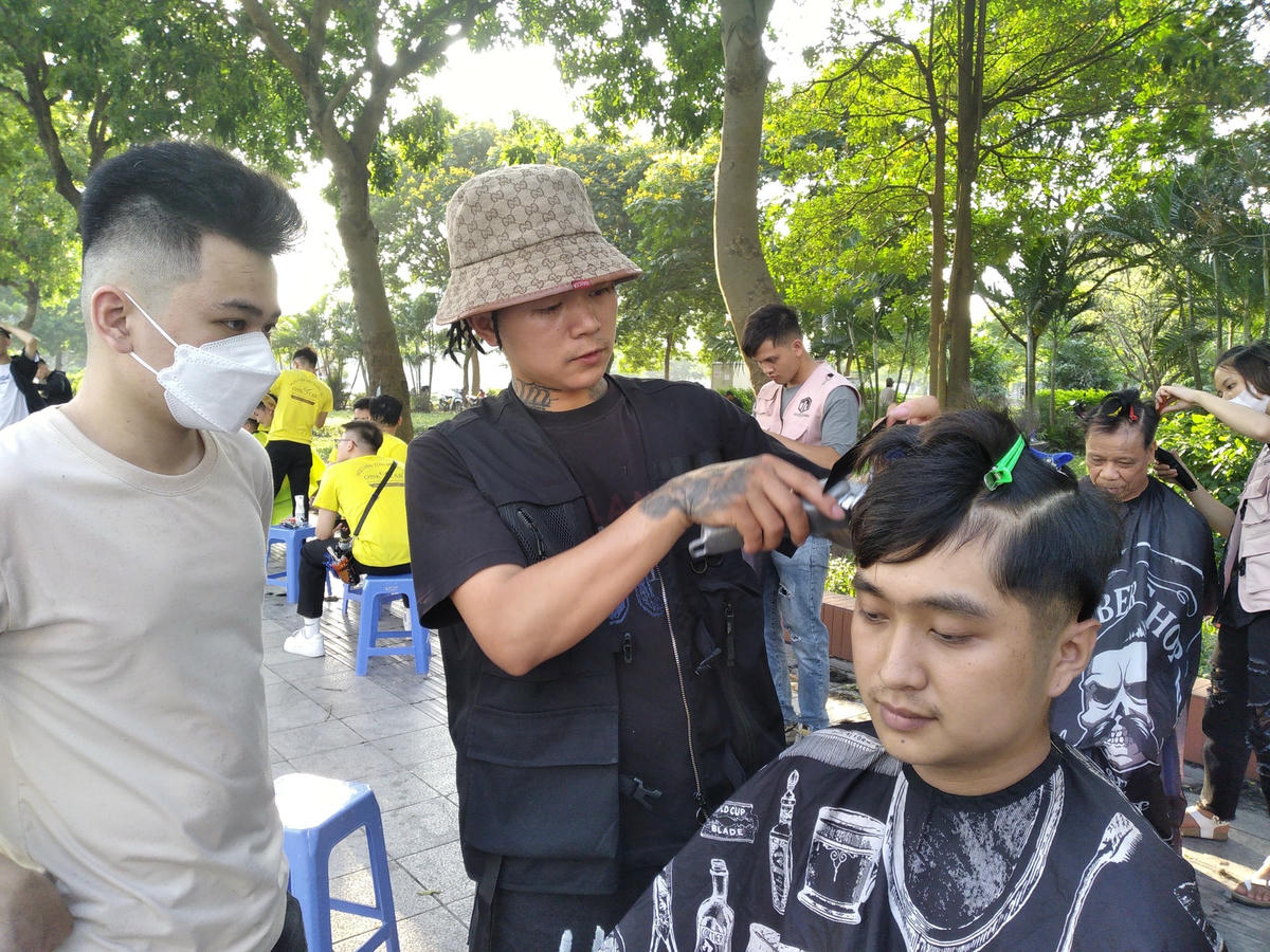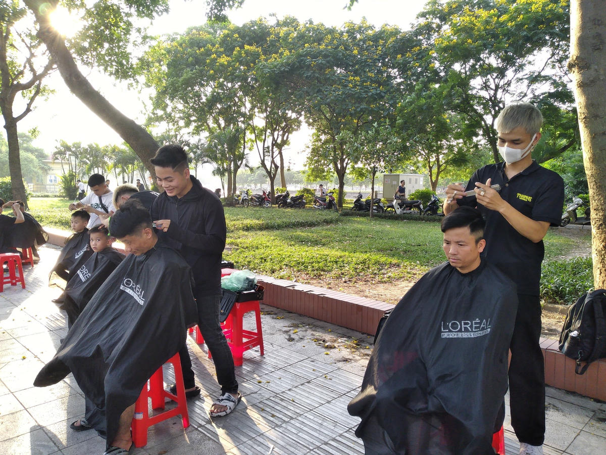 Giữa thời tiết nắng như đổ lửa, một số các bạn trẻ tụ tập để làm công việc từ thiện cắt tóc miễn phí tại hồ Đền Lừ (Hoàng Mai, Hà Nội). Đa số khách hàng của họ là những lao động nghèo, xe ôm công nghệ Grab, người lớn tuổi, trẻ em hay sinh viên, học sinh.
