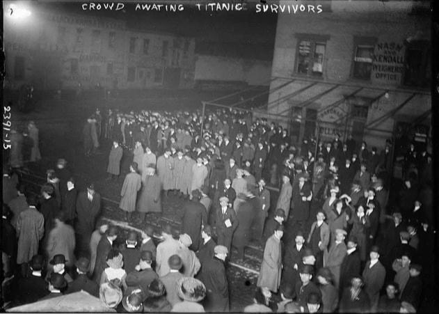 Titanic là con tàu vượt đại dương lớn nhất hành tinh lúc đi vào hoạt động năm 1910. Nó được gọi là "kình ngư bất khả chiến bại" trên đại dương, không thể bị đánh chìm.Hành khách đi bộ trên tàu Titanic bên cạnh xuồng cứu sinh, thứ mà vài ngày sau họ phải sử dụng chúng.Một cậu bé đang chơi trên tàu, trước sự kiện chết chóc vài ngày.Lần chuẩn bị khởi hành cuối cùng của Titanic xuất phát từ Belfast, Bắc Ireland vào ngày 2/4/1912.Ảnh chụp ngày 4/4/1912 cho thấy những tảng băng trên biển đã xuất hiện từ trước khi thảm họa xảy ra vài ngày.Hình ảnh hành khách xếp hàng lên tàu vào ngày 10/4/1912. Tất cả đều không thể ngờ rằng con tàu sang trọng này sẽ không bao giờ đến được đích.Thuyền trưởng Edward J. Smith (phải) và người quản lý tàu Hugh Walter McElroy chụp ảnh kỷ niệm trên boong Titanic.Bức ảnh tảng băng trôi khổng lồ do thuyền trưởng W. F. Wood trên tàu S. S. Etonian lưu thông gần Titanic chụp ngày 12/4/1912 rất có thể là bức ảnh duy nhất chụp tảng băng "tử thần" nổi tiếng đã nhấn chìm Titanic.Xuồng cứu sinh đưa những người sống sót ra khỏi cảnh tượng đau lòng.Những con xuồng cứu sinh đưa những người may mắn được cứu rời khỏi con tàu đang chìm. Đã có khoảng 700 người được sống sót sau thảm họa hàng hải này.Những người sống sót ngồi trên boong tàu Carpathia, con tàu đã giúp cưu mang không ít người từ Titanic. Họ được các hành khách tàu Carpathia choàng chăn ấm, tặng quần áo sau khi được giải cứu ngày 15/4/1912Một nhóm người may mắn khác được cứu sống ở Millbay, Plymouth. Mọi người đều bần thần trước trải nghiệm sinh tử vừa rồi.Một cậu bé bán báo cầm tờ báo với trang nhất đưa tin về vụ tai nạn đứng ngay trước trụ sở của công ty vận hành Titanic là White Star Line ngay sau khi con tàu gặp nạn.Dòng người đứng ngoài trụ sở White Star Line để nghe ngóng tin tức. Thảm kịch Titanic đã làm chấn động nước Anh khi ấy.Các thân nhân hành khách đứng đợi người sống sót cập bến ở New York (Mỹ), dù họ không thể biết chắc trong đoàn người được giải cứu có người thân của mình hay không.Những xuồng cứu sinh được thả xuống từ tàu Carpathia khi cập bến New York ngày 18/4/1912.Một người phụ nữ may mắn sống sót cười rạng rỡ khi hội ngộ người thân của mình.Mãi đến năm 1985, một phần xác đầu tiên được cho là của Titanic mới được tìm thấy dưới đáy biển sâu.