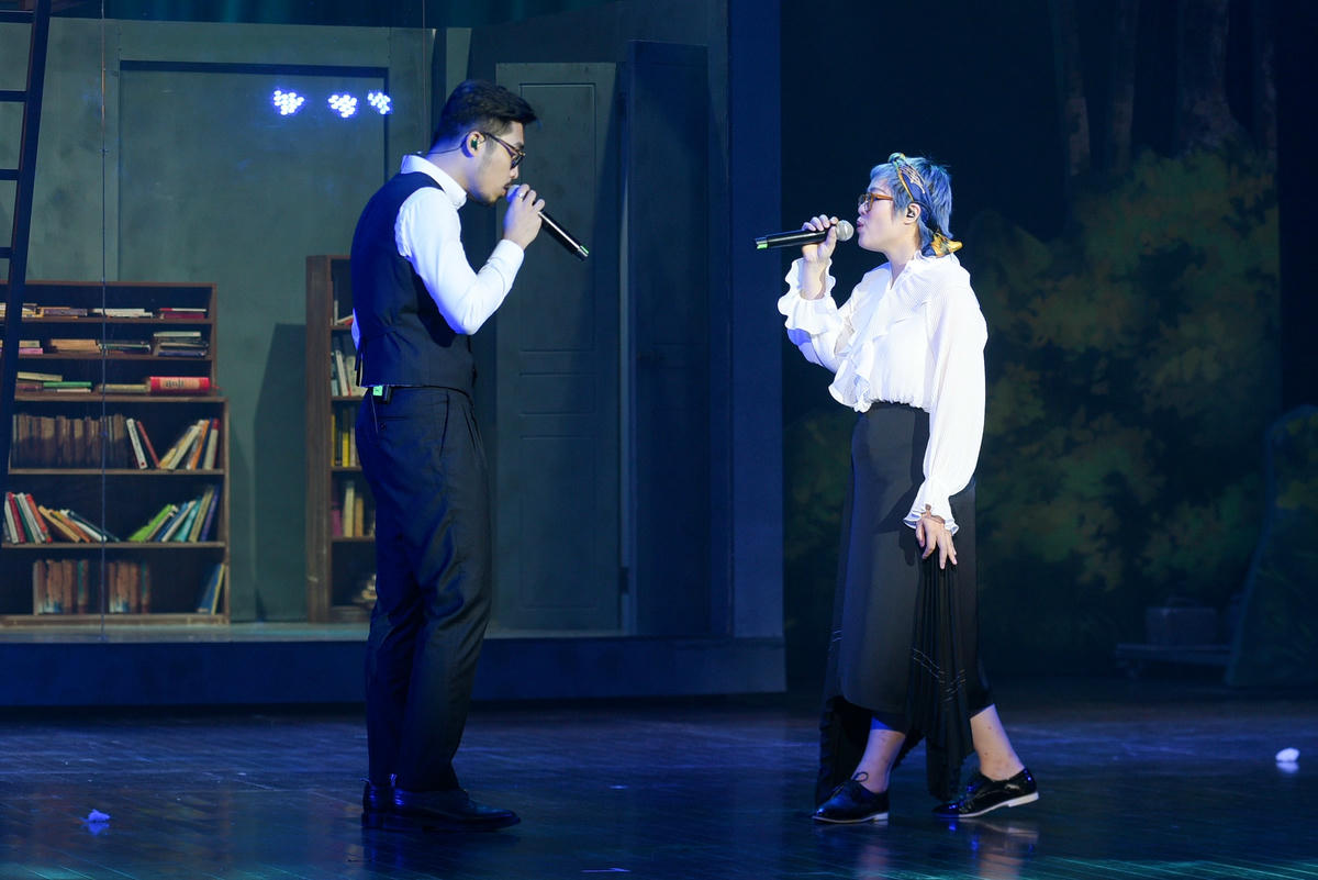 Đêm thơ nhạc kịch “Hoa cúc xanh” mở màn với tiết mục đồng ca thơ "Con yêu mẹ bằng con dế" và "Chuyện cổ tích về loài người" do học sinh Trường THCS Giảng Võ (Hà Nội) biểu diễn. Tiết mục gợi lại một Xuân Quỳnh lí lắc, dí dỏm với đầy tình yêu thương dành cho trẻ nhỏ. Tiếp nối mạch cảm xúc, chương II - "Sóng" mở ra không gian với âm nhạc và những thước phim tư liệu. Bên cạnh Vũ lịch lãm, thâm trầm, Mạc Mai Sương giản dị và mộc mạc như thường lệ. Hai giọng ca trẻ, với "màu" giọng văn minh, 2 giọng ca kết hợp đầy mới mẻ, sáng tạo. Ảnh: BTC. Sau màn kết hợp độc đáo, ca sĩ Hồng Nhung xuất hiện và mang đến những rung cảm thiết tha trong "Hoa Quỳnh", "Thuyền và biển". Bằng chất giọng đặc trưng, Hồng Nhung khiến toàn bộ khán giả vỡ òa vì cách xử lý tinh tế của một diva, đem đến cho người xem cảm xúc tôn vinh, kính ngưỡng mà chị dành cho nhà thơ Xuân Quỳnh.Mạc Mai Sương - giọng ca mang đậm chất indie lần đầu thể hiện nhạc phẩm "Thư tình cuối mùa thu" (nhạc Phan Huỳnh Điểu, thơ Xuân Quỳnh). Tuy khá rụt rè khi chưa diễn nhiều tại các chương trình lớn nhưng Mạc Mai Sương mang tới một nét vẽ tươi mới, tinh khôi và không kém phần hiện đại cho đêm nghệ thuật.Nhạc sĩ Giáng Son bất ngờ tái xuất sàn diễn khi thể hiện chính ca khúc do chị sáng tác "Anh là tất cả của đời em", phổ thơ Xuân Quỳnh. Chị thả vào đó những gam màu tươi sáng, nhưng cũng đầy da diết, tình cảm, đúng như phong cách âm nhạc thường lệ. Có thể nói, Giáng Son đã thành công khi biến bài thơ của Xuân Quỳnh thành một ca khúc hay, với nhịp điệu tự nhiên, không hề khiên cưỡng và gò ép.Mạch cảm xúc của chương trình được tiếp nối khi NSND Lê Khanh, NSƯT Minh Trang đã trình diễn những bài thơ, những trích đoạn thơ của nhà thơ Xuân Quỳnh trong chương 3: "Tự hát". Họ đều là những người từng gắn bó và chia sẻ với vợ chồng Lưu Quang Vũ – Xuân Quỳnh nhiều kỷ niệm. Cùng với chiều dài của thời gian và chiều sâu của những trải nghiệm, họ thể hiện được tình cảm gia đình, những trăn trở và khắc khoải mà nữ sĩ đã ghi lại. Cũng ở phần này, ngôi nhà 6 m2 được tái hiện và mở ra trên sân khấu. Tình yêu của Xuân Quỳnh và Lưu Quang Vũ bao trùm lên không gian Nhà hát Lớn khi NSND Lan Hương và NSƯT Đỗ Kỷ đọc lại những lá thư của họ.Ngay sau đó, diva Hồng Nhung và ca sĩ Vũ song ca ca khúc "Tình yêu ở lại" (sáng tác của nhạc sĩ Quốc Trung) – như lời khẳng định: Dù họ đã ra đi, tình yêu họ để lại nhân gian là bất diệt…Đêm nhạc dường như lắng đọng hơn khi vở kịch ngắn "Ai đã lấp cái đầm lầy mãi mãi" được đẩy lên tới đỉnh điểm. Chương 4 của đêm nghệ thuật, lấy ý tưởng từ bài thơ "Hoa cúc xanh" của nữ sĩ Xuân Quỳnh, cũng như vở kịch "Hoa cúc xanh trên đầm lầy" của nhà biên kịch Lưu Quang Vũ cho thấy sợi dây kết nối không chỉ cho mối tình thiêng liêng của hai tài năng lớn mà còn là biểu tượng của những điều tốt đẹp, những giá trị nhân văn luôn cần hiện diện trong cuộc sống.Khép lại chương trình, ca sĩ Bùi Lan Hương hát vang bài ca "Hoa cúc xanh", bài hát cô tự sáng tác riêng cho chương trình. Với những giai điệu bay bổng, Bùi Lan Hương mang vào đó chất phiêu lãng rất riêng của cô, tạo thành cái kết đẹp và đầy dư âm cho đêm nhạc. Đêm nhạc đã mang đến cảm xúc không chỉ cho khán giả có mặt trong khán đài của Nhà hát Lớn mà còn là nơi để các nghệ sĩ bày tỏ sự ngưỡng mộ, tình yêu với thi sĩ Xuân Quỳnh. Là một khán giả có mặt trên hàng ghế từ sớm để theo dõi đêm thơ - nhạc - kịch "Hoa cúc xanh" nhân kỷ niệm 80 năm Ngày sinh nữ thi sĩ Xuân Quỳnh, chị Đặng Linh Chi (50 tuổi, Hà Nội) xúc động chia sẻ: "Đêm nhạc cho tôi nhiều cảm xúc về hình tượng nữ thi sĩ đẹp không chỉ qua những lời thơ mà còn ở chính cuộc đời của bà. Những giá trị bền vững mà ông cha ta đã xây và thế hệ tiếp nối kế cận phải có công gìn giữ, bảo tồn. Đêm nhạc làm tôi nhớ về những ngày thơ bé, trốn mẹ đi xem kịch về Xuân Quỳnh - Lưu Quang Vũ, tình yêu của họ sẽ sống mãi trong lòng khán giả yêu thơ".
