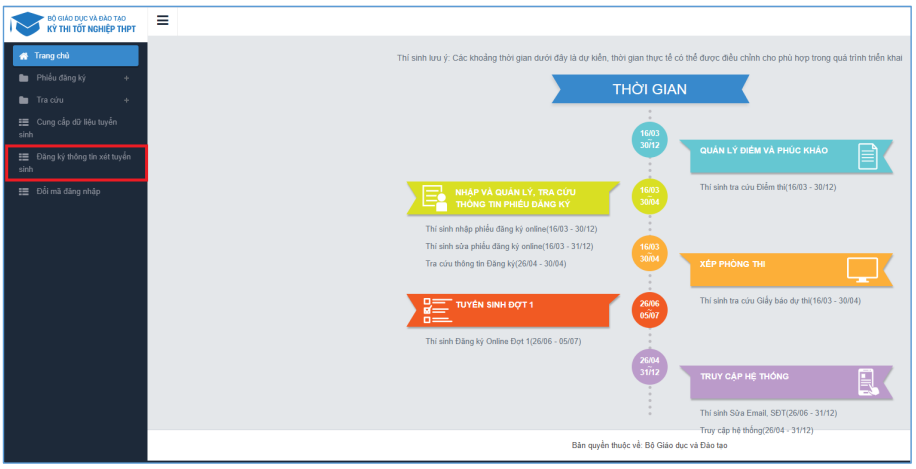 Để tránh hiện tượng quá tải trong quá trình thí sinh thực hiện thanh toán trực tuyến, Bộ GDĐT phân chia thời gian thí sinh thực hiện thanh toán trực tuyến trên hệ thống hỗ trợ đăng ký xét tuyển theo các tỉnh, thành phố (nơi thí sinh đã nộp hồ sơ) thành 6 đợt trong thời gian từ ngày 31/7 đến 17h ngày 6/8.