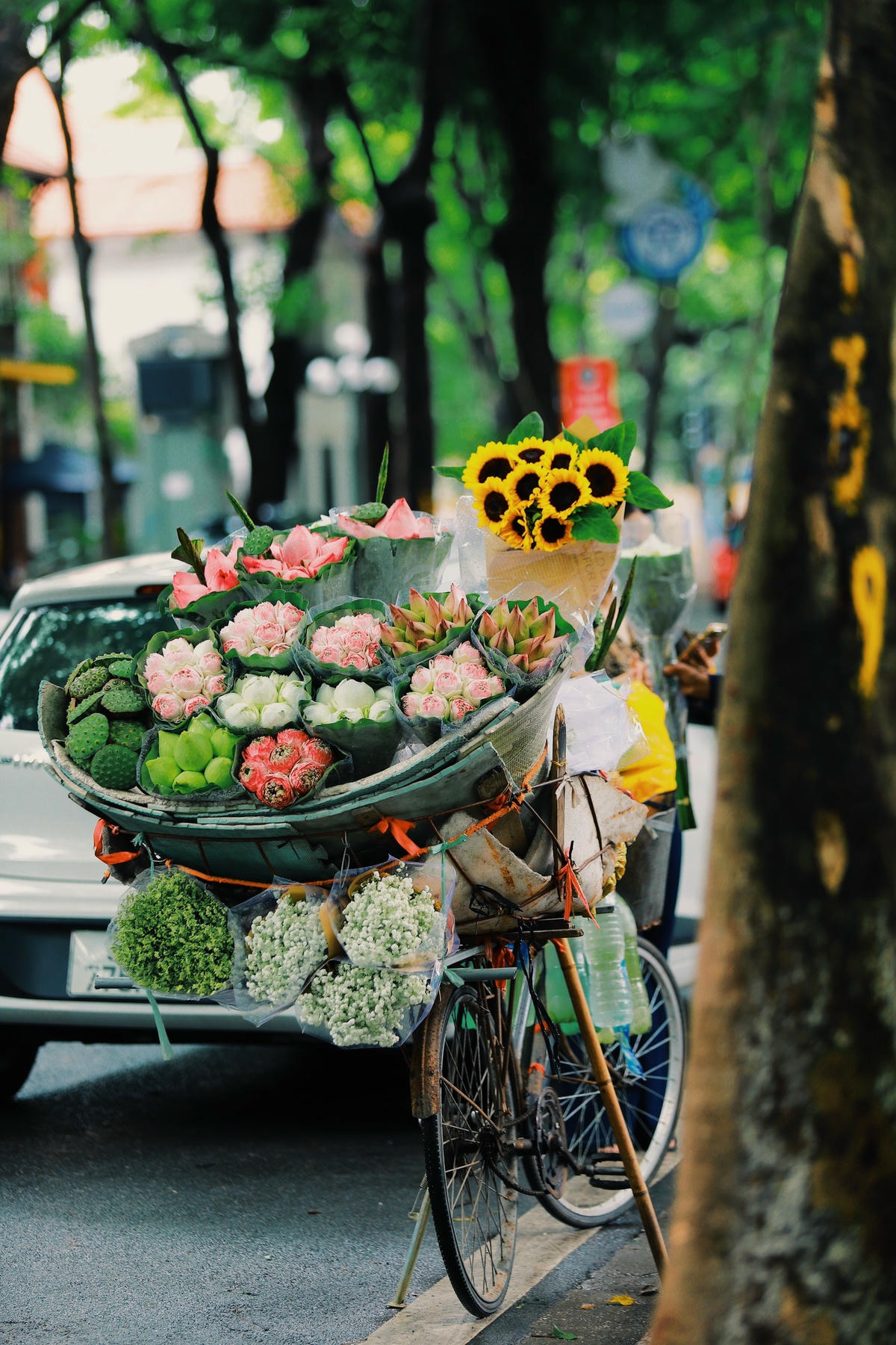 Mỗi mùa một sắc hoa đong đầy trên những chiếc xe đạp cũ kỹ, rong ruổi khắp các nẻo đường mang đến cho Hà Nội vẻ đẹp dịu dàng, trong trẻo. Mùa nào hoa nấy, 12 tháng là 12 mùa hoa rực rỡ.
