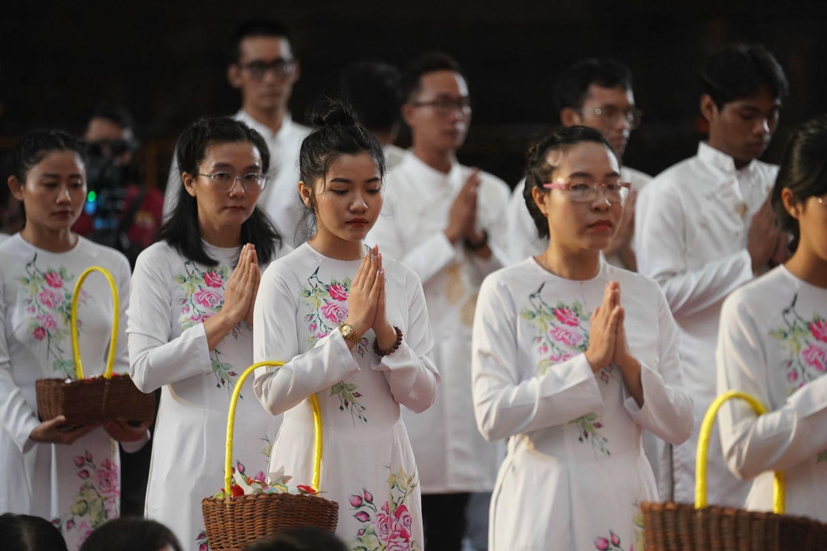 Tại khu triển lãm Phật giáo dưới chân tượng Phật Bà Tây Bổ Đà Sơn, dưới sự chủ trì của các Chư tăng Tôn đức tăng (ni) thuộc Ban Trị sự GHPGVN, Phật tử và du khách cùng thực hành tụng niệm cầu an, hướng đến tâm an trí tĩnh, rũ bỏ muộn phiền, một lòng nguyện cầu Quốc thái dân an và hướng lòng thành kính về các bậc sinh thành.