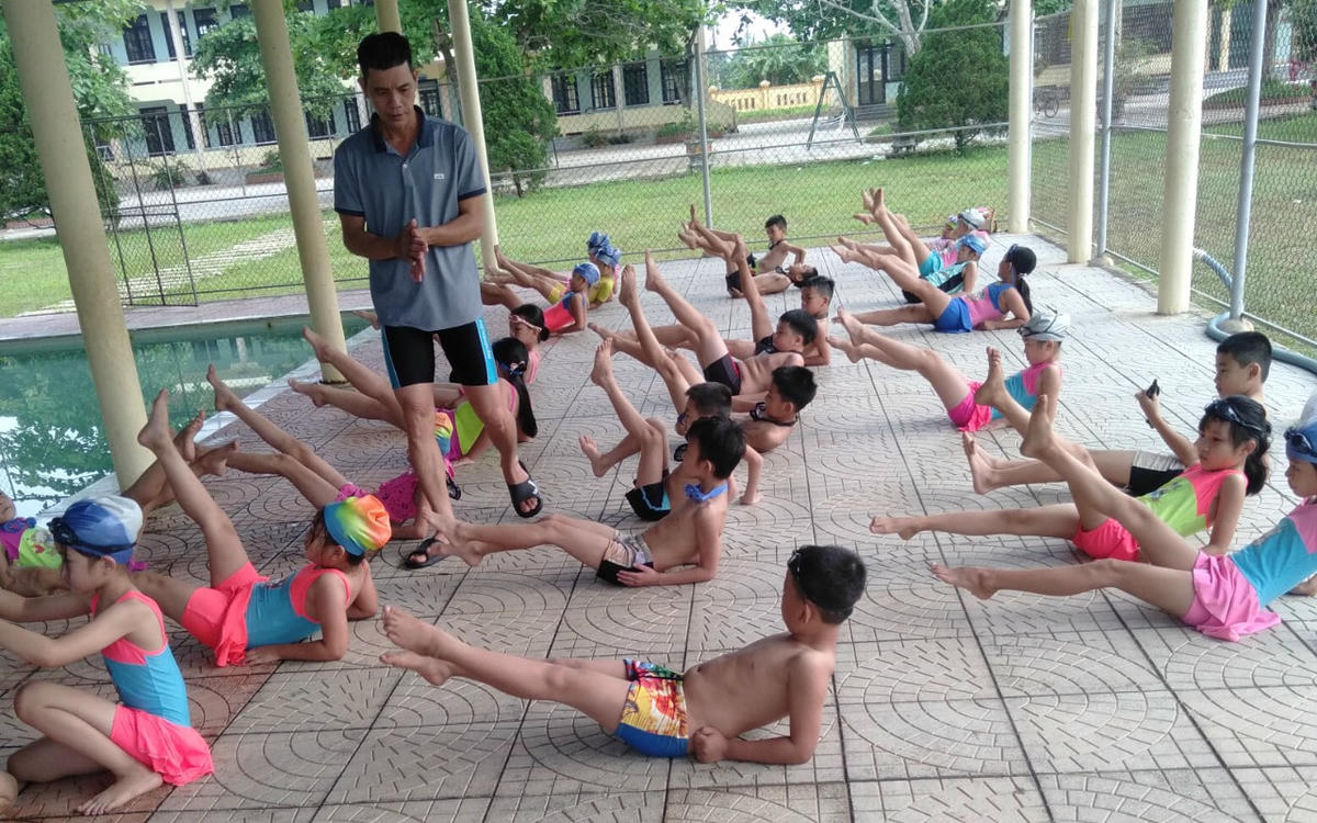 Anh Hoàng Văn Diện - giáo viên dạy bơi ở Trường Tiểu học Mai Thủy chia sẻ: Tham gia dạy bơi cho học sinh, chúng tôi xác định phải giảng dạy hiệu quả từ buổi học đầu tiên. Do đó, hầu như suốt cả buổi học, chúng tôi đều phải dầm mình trong nước để hướng dẫn kỹ từng động tác bơi, kỹ thuật phòng, chống đuối nước để các em tiếp thu và thực hành đạt yêu cầu.