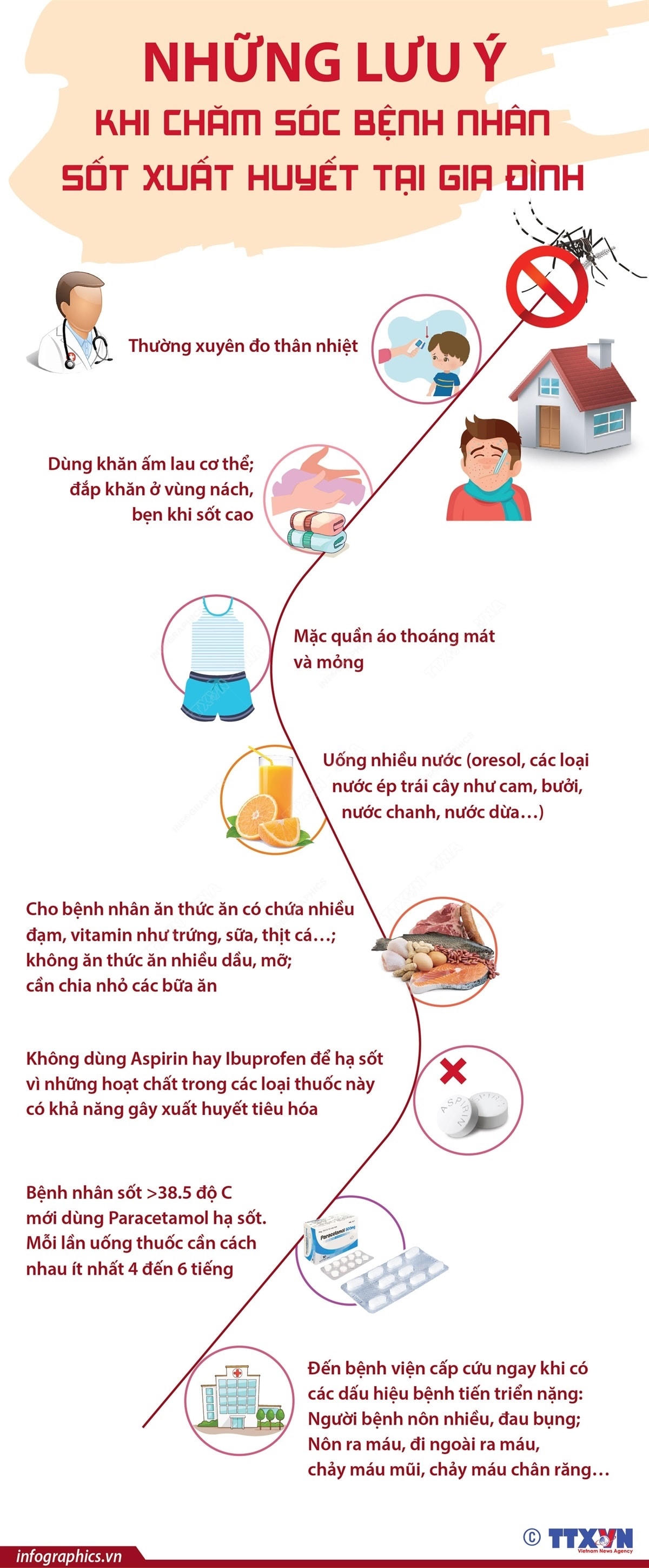Những lưu ý khi chăm sóc bệnh nhân sốt xuất huyết tại gia đình Thứ Hai 04/07/2022 10:51 (GMT+7) Người bị sốt xuất huyết cần được chẩn đoán sớm, điều trị kịp thời và chăm sóc cẩn thận để phòng tránh nguy cơ biến chứng, thậm chí là tử vong. PV (Theo TTXVN)