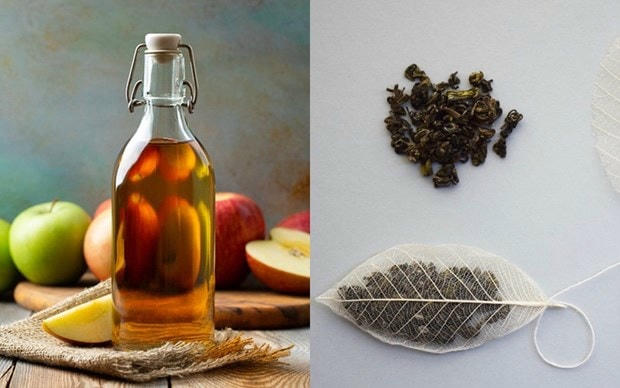 Trong giấm táo có chứa các thành phần chống viêm và làm trắng da cực kỳ hiệu quả; còn axit tannin đậm đặc trong trà đen có tính kháng khuẩn giúp giảm viêm và tấy đỏ.