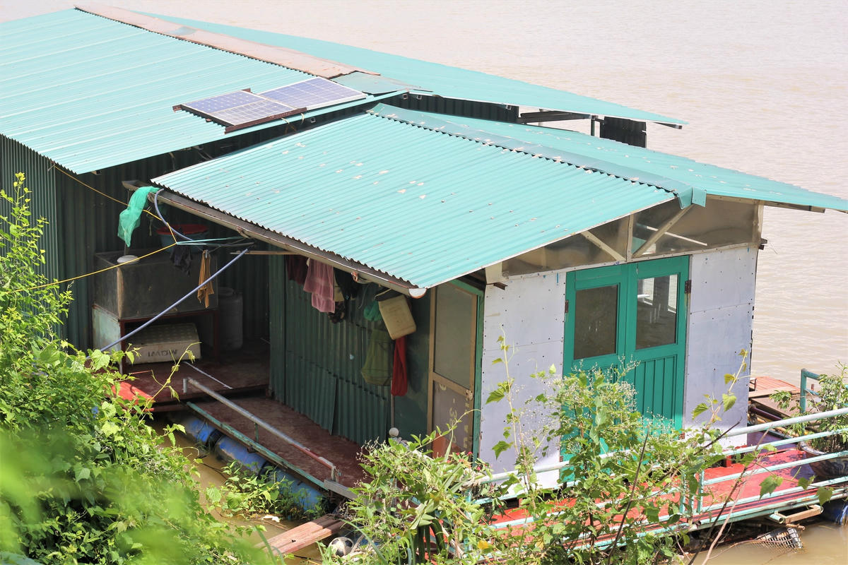 Đối lập với tòa nhà cao tầng sầm uất, nhộn nhịp của Thủ đô, là những "túp lều" lênh đênh trên mặt nước dưới chân cầu Long Biên mà người ta vẫn thường gọi là nhà phao. 30 hộ gia đình, hơn 100 nhân khẩu cứ thế sống lay lắt qua ngày.