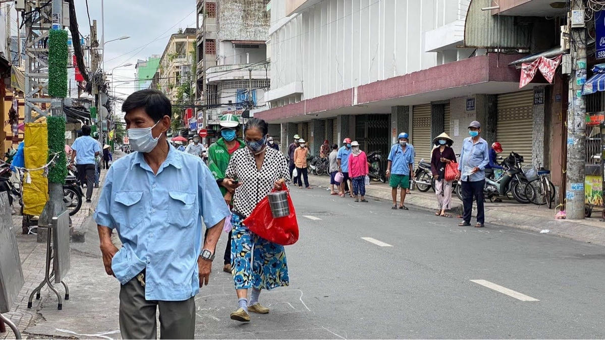 “Đợt không có dịch bệnh mình thường mua sẵn, có khi là 100, có khi là 150 suất rồi cùng ông xã chở sang phát cho bà con. Cũng không phải tiền của mình hết đâu, tiền bạn bè, có người ở tận bên Mỹ cũng gửi góp mua cơm cho người nhà bệnh nhân để tích đức. Rồi mấy tháng nay quán ăn đóng cửa, mình mua sẵn gà với sườn về nấu ăn, cho vào hộp cẩn thận. Thường thì sáng thứ 4 và thứ 6 nhóm mình phát bởi cuối tuần nhiều bạn trẻ sinh viên hay tới hỗ trợ, bà con cũng không lo gì nhiều”, chị Thương kể.