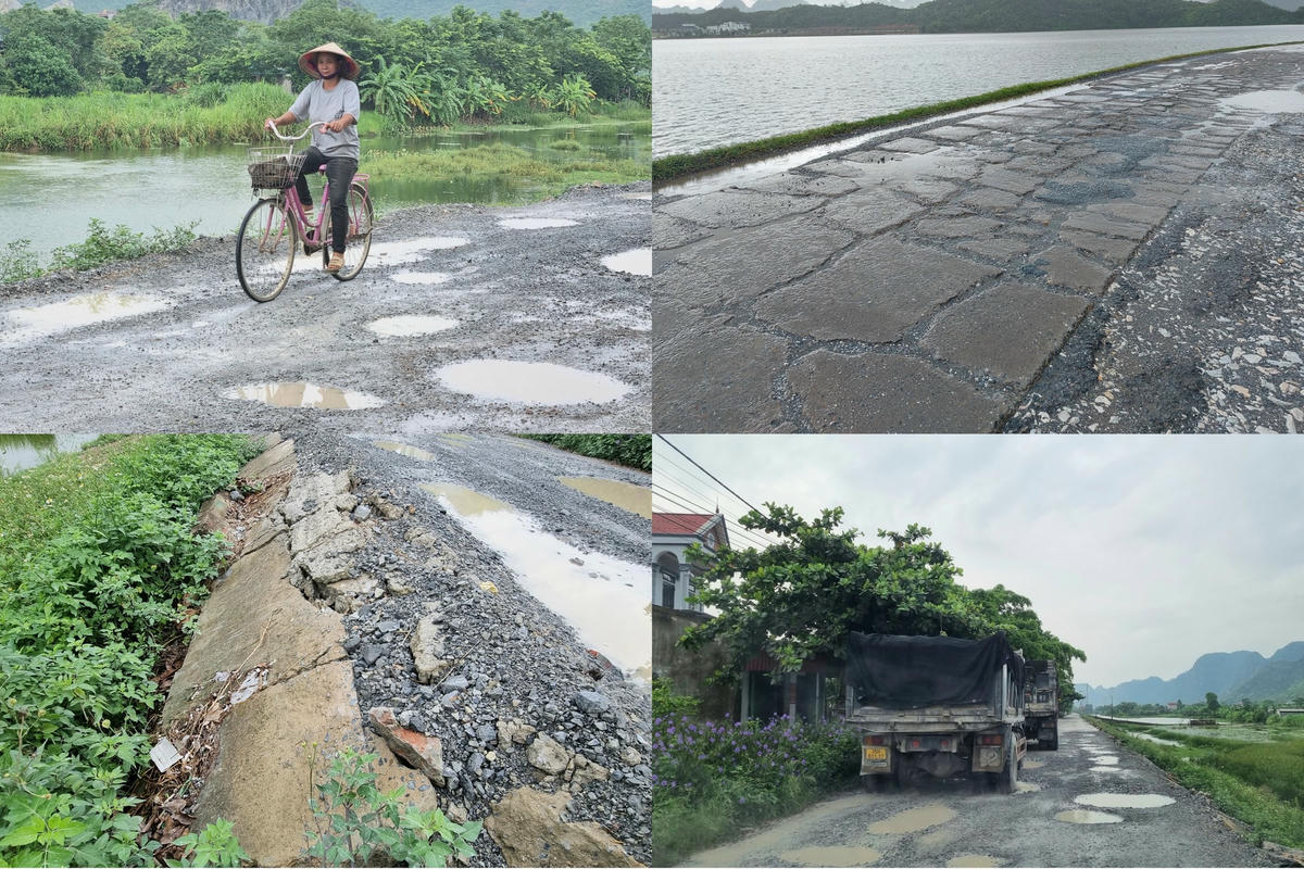Với tuyến đê Yên Đồng, hoàn cảnh cũng tương tự khi mặt đê bị hư hỏng trầm trọng, xuất hiện rất nhiều “ổ voi, ổ trâu”… tại nhiều vị trí. Mặc dù bề rộng mặt đê khá hẹp nhưng mỗi ngày đều phải “oằn mình” trước hàng chục tấn hàng của các xe tải chở vật liệu xây dựng, xi măng… Mỗi khi có mưa, tuyến đê úng ngập, vỡ ra từng mảng. Theo bà Nguyễn Thị Len - Chủ tịch UBND xã Yên Đồng, tuyến đê hồ Yên Đồng đã xuống cấp khoảng 2-3 năm nay. “Sau khi tiếp nhận ý kiến cử tri trong các cuộc họp, chúng tôi cũng mời các ban, ngành liên quan về làm việc để bàn hướng khắc phục. Tuy nhiên, việc sửa chữa như “muối bỏ bể” vì căn nguyên gây hư hỏng đê là xe quá tải thì không cấm triệt để được” - bà Len thông tin.