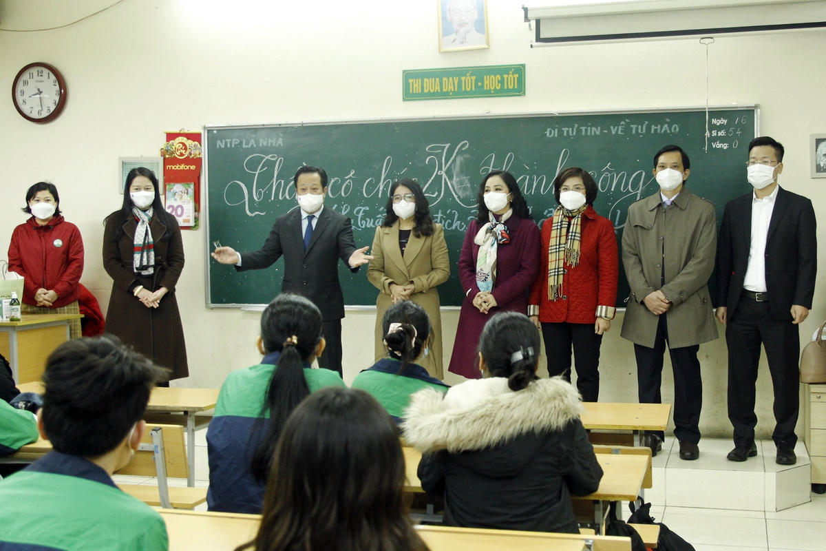 Trong sáng 8/2, đoàn công tác của Sở GDĐT Hà Nội do Giám đốc Trần Thế Cương dẫn đầu đã đi kiểm tra, nắm bắt tình hình tổ chức dạy học trực tiếp tại Trường THPT Phan Đình Phùng (quận Ba Đình), Trường THCS Nguyễn Tri Phương (quận Ba Đình) và Trường THPT Chu Văn An (quận Tây Hồ).