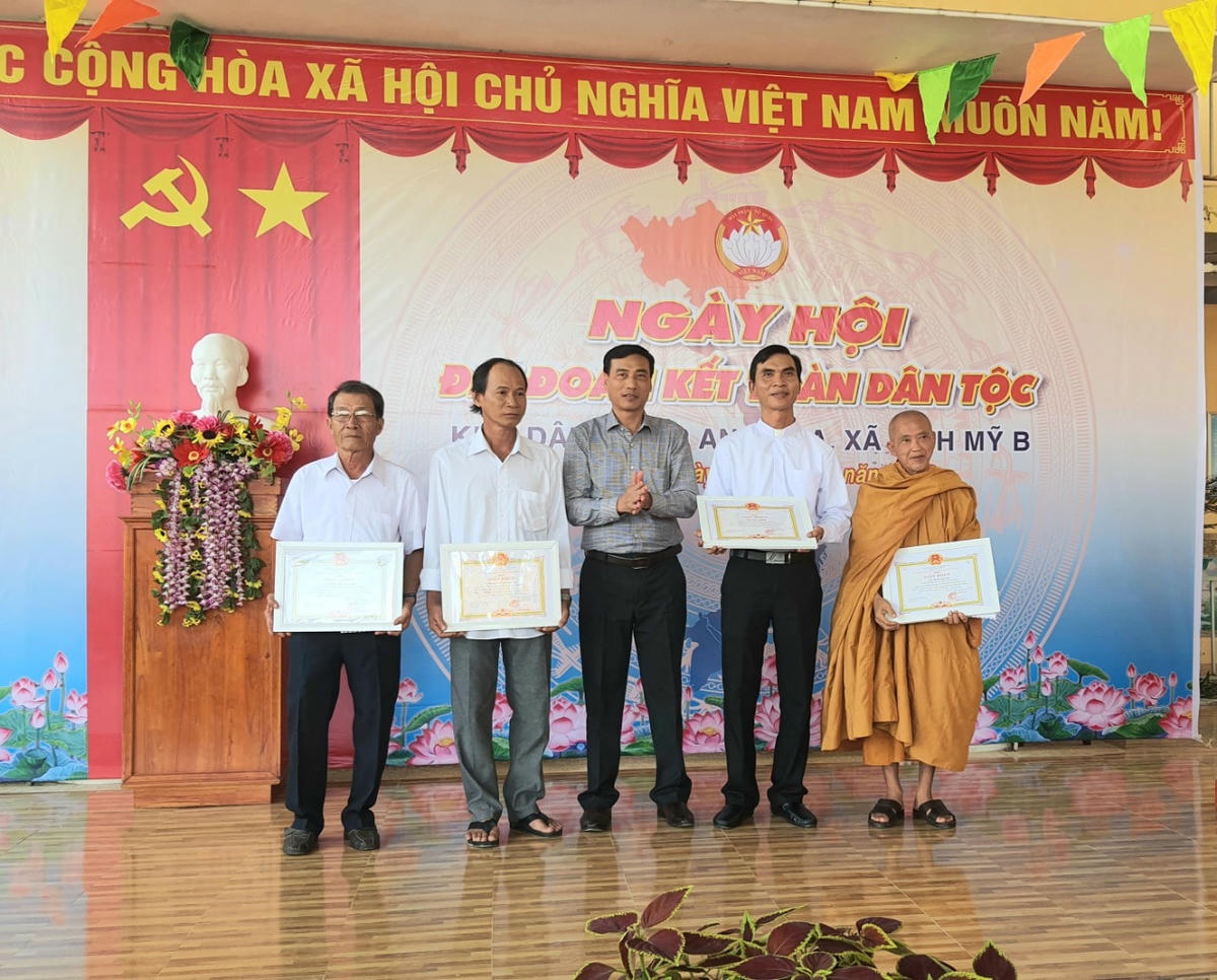 Nhân dịp này, UBND huyện Hòa Bình đã tặng thưởng cho Ban Công tác Mặt trận ấp An Khoa và 4 cá nhân ấp An Khoa, xã Vĩnh Mỹ B có thành tích xuất sắc trong xây dựng khối Đại đoàn kết toàn dân tộc.