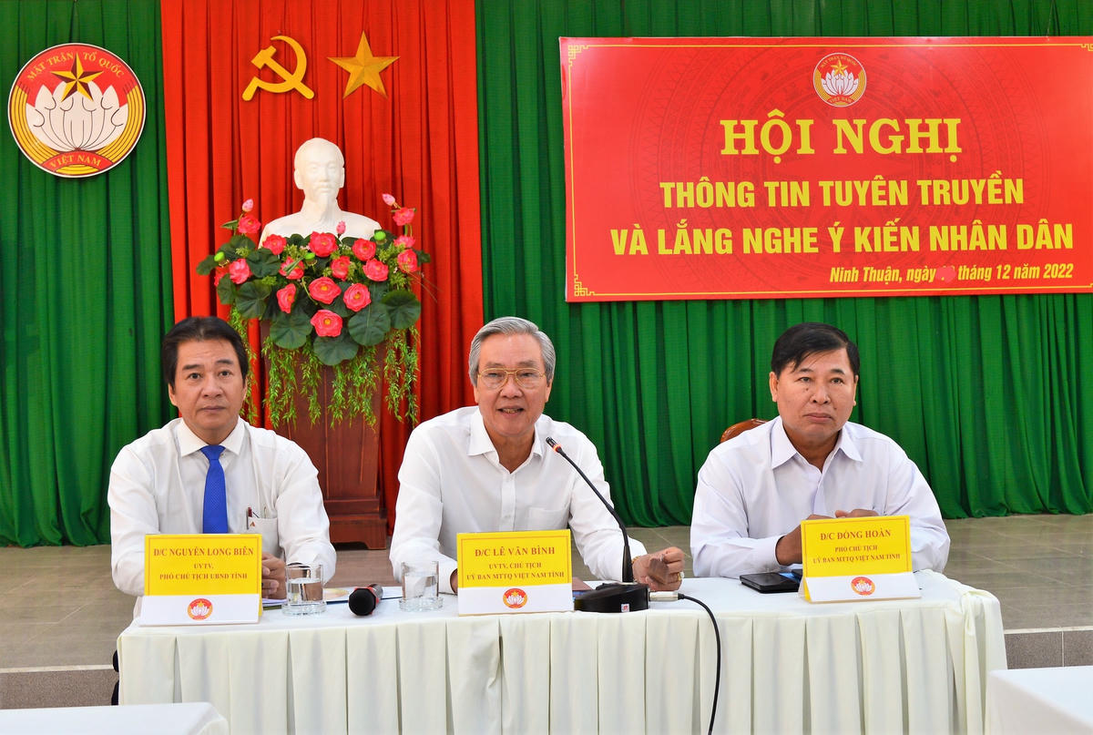 Ngày 20/12, Ủy ban MTTQ Việt Nam tỉnh Ninh Thuận, tổ chức Hội nghị thông tin tuyên truyền và lắng nghe ý kiến Nhân dân, ông Lê Văn Bình, UVTV Tỉnh ủy, Chủ tịch Ủy ban MTTQ Việt Nam tỉnh chủ trì hội nghị.