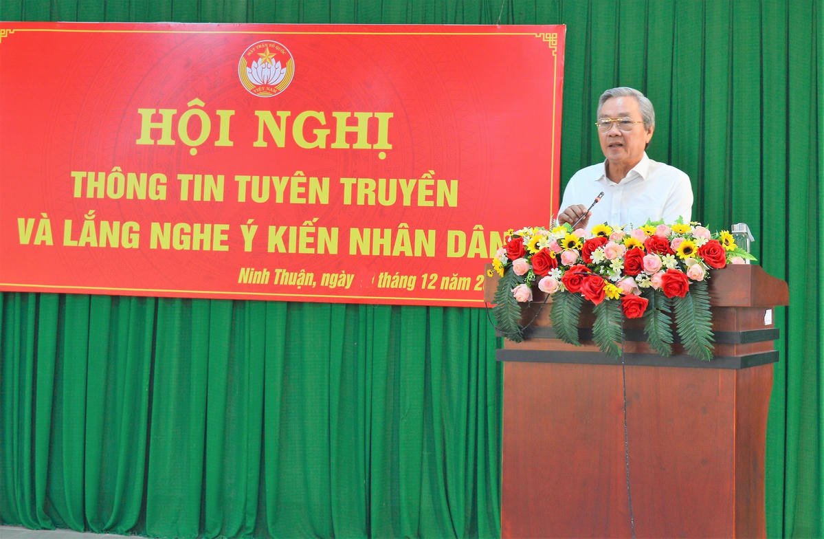 Phát biểu tại hội nghị, ông Lê Văn Bình, Chủ tịch Ủy ban MTTQ Việt Nam tỉnh Ninh Thuận, ghi nhận và đánh giá cao những ý kiến đóng góp tâm huyết, trách nhiệm của nhân sĩ, trí thức, chức sắc các tôn giáo, người có uy tín.