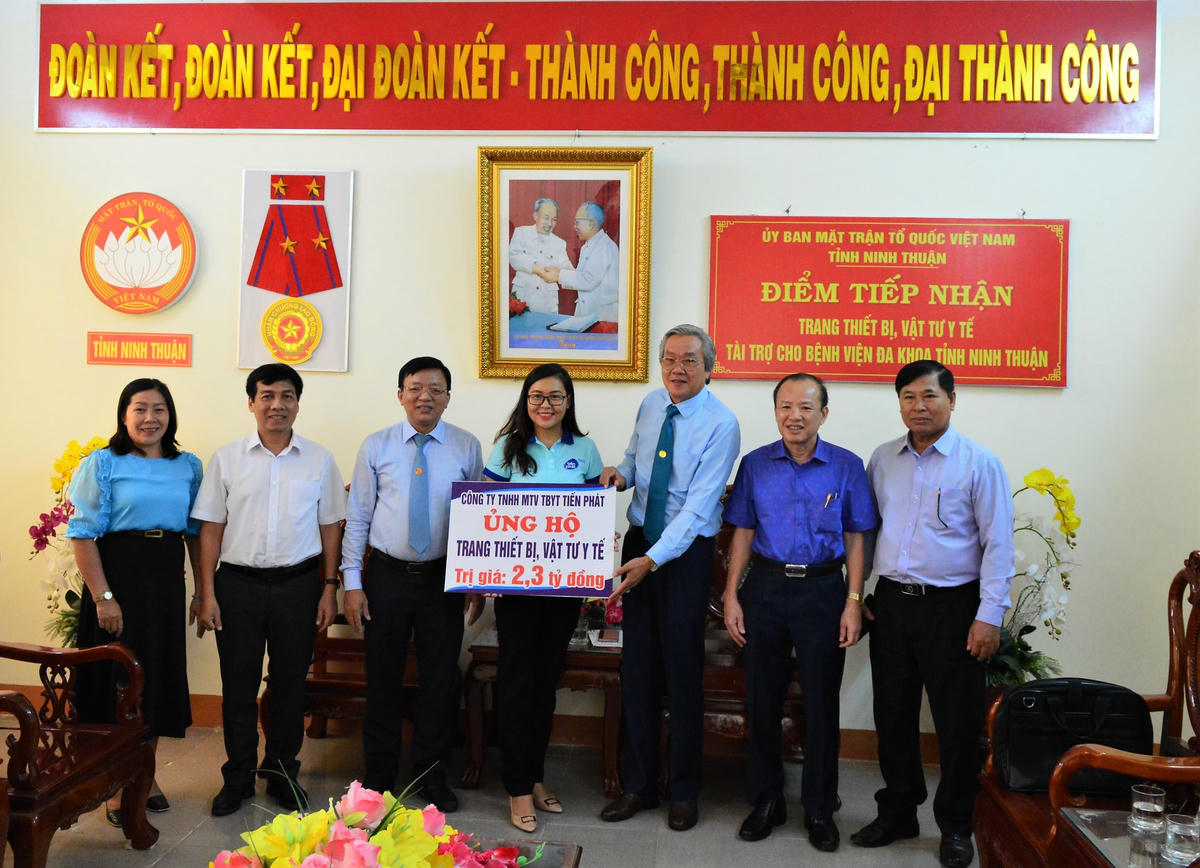 Nhân dịp này, Ủy ban MTTQ Việt Nam tỉnh Ninh Thuận đã trao bảng Tấm lòng vàng cho các doanh nghiệp tích cực tham gia, ủng hộ trang thiết bị, vật tư y tế cho Bệnh viện Đa khoa tỉnh Ninh Thuận.