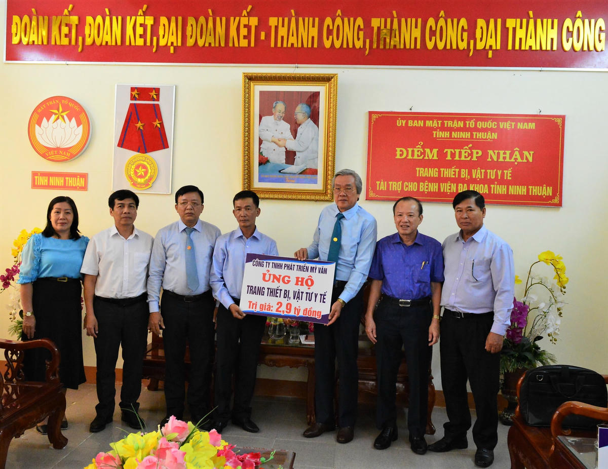 Tại đây, Ban Thường trực Ủy ban MTTQ Việt Nam tỉnh Ninh Thuận đã tiếp nhận ủng hộ trang thiết bị, vật tư y tế của 6 doanh nghiệp trong và ngoài tỉnh Ninh Thuận, với trị giá trên 07 tỷ đồng.