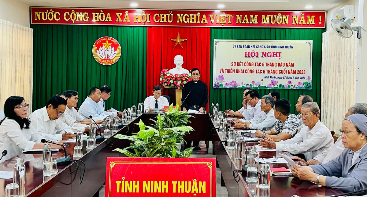 Ngày 7/7, Ủy ban Đoàn kết Công giáo tỉnh Ninh Thuận tổ chức hội nghị sơ kết đánh giá công tác 6 thàng đầu năm và triển khai nhiệm vụ 6 tháng cuối năm 2023, Linh mục Trần Văn Hải, Chủ tịch Ủy ban Đoàn kết công giáo tỉnh Ninh Thuận; ông Lê Văn Phúc, Phó Chủ tịch Thường trực Ủy ban Đoàn kết công giáo tỉnh Ninh Thuận chủ trì hội nghị.