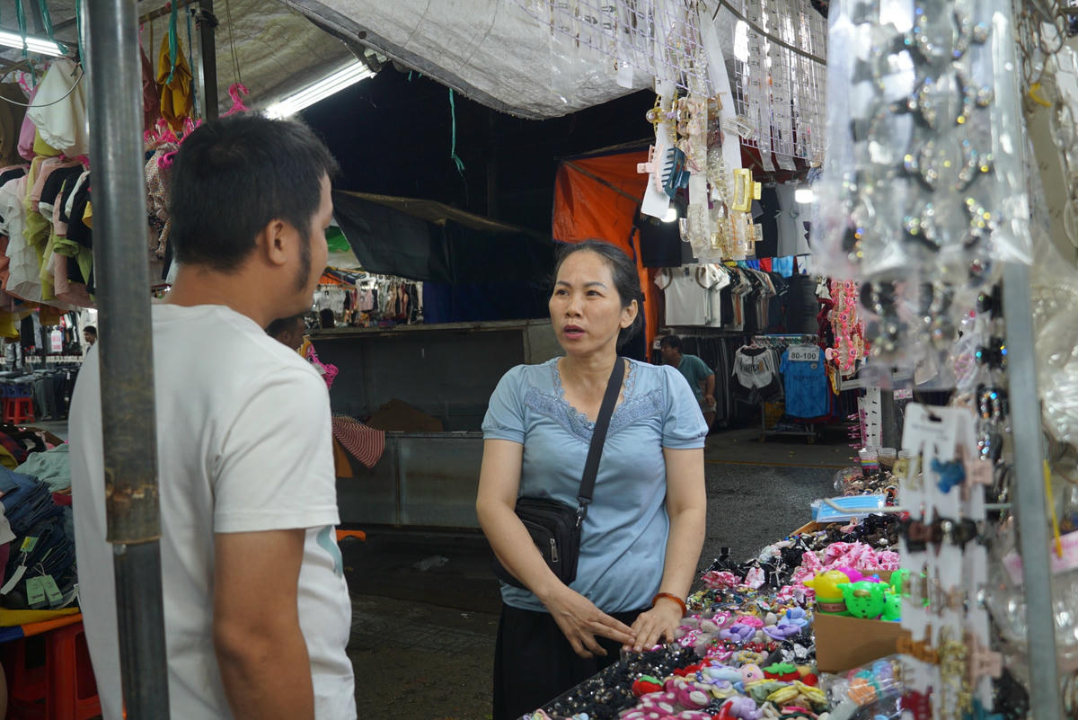 Ông Trần Thúc Bảo (47 tuổi), quê Quảng Ngãi, hiện đang ở trọ tại TP Thủ Đức, TP Hồ Chí Minh là chủ sạp bán áo quần tại chợ đêm Biên Hùng cho biết, việc kinh doanh hiện tại khá khó khăn. Không chỉ riêng ông mà đa số tiểu thương đều đang ở chế độ kinh doanh kiểu “cầm hơi”. “Vợ chồng tôi từ quê miền Trung vào Nam lập nghiệp bán ở đây được mười mấy năm rồi. Phần lớn thu nhập đều từ sạp áo quần tại đây. Giờ bán được gì tốt đó, có thu nhập là tốt rồi” ông Bảo nói và khẳng định, kinh doanh khó khăn là do nhiều nguyên nhân. Nhất là từ sau dịch Covid-19 đến nay, tiểu thương rất nản vì ế.