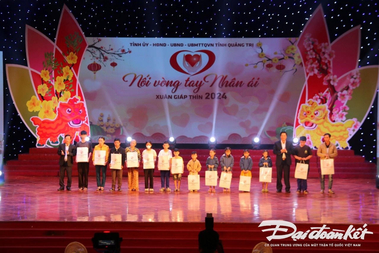 Ban tổ chức cho biết, chương trình “Nối vòng tay nhân ái” tỉnh Quảng Trị Xuân Giáp Thìn 2024 đã nhận hỗ trợ xây dựng nhà Đại đoàn kết và các phần quà Tết cho hộ nghèo khó khăn trị giá hơn 20 tỷ đồng.