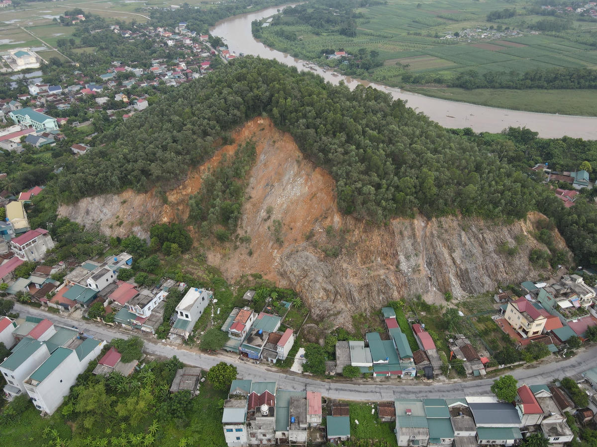 Còn ở phía Bắc ngọn núi, hướng mặt ra sông Lèn là nơi định cư của 36 hộ dân. Ở khu vực này, chủ yếu là đất thịt, có kết cấu khá rời rạc nên mỗi lần mưa lớn, đất và cây cối bị trượt xuống sát nhà dân.