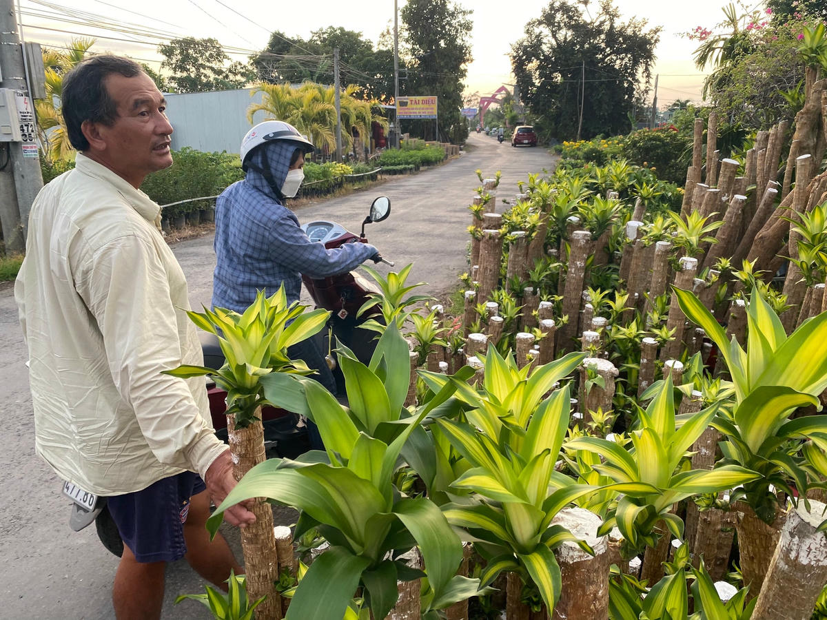 Chia sẻ thêm về công việc trồng hoa kiểng, ông Chín cho biết vườn nhà ông trồng hoa quanh năm. Tuy nhiên dịp tết thì lượng hoa kiểng được đầu tư trồng nhiều hơn gấp 4-5 lần những tháng khác. "Mỗi loại hoa kiểng có thời gian ươm trồng khác nhau. Như thiên thảo thì chỉ hơn một tháng là xuất bán được. Những chậu hoa này đều được công ty họ mua hết rồi, chuẩn bị đem lên xe đưa đi. Giờ nhiều nơi họ trưng hoa kiểng sớm lắm. Còn những chậu cúc mâm xôi bên kia thì thời gian gieo trồng lâu nhất, mất 6 tháng mới bán được. Nhưng giá lại cao hơn, chừng 150-180 ngàn đồng/chậu", ông chia sẻ.