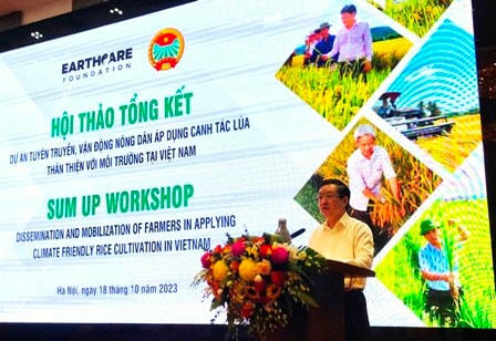 Ngày 18/10, tại Hà Nội, Trung ương Hội Nông dân Việt Nam (Hội NDVN) tổ chức Hội thảo tổng kết dự án “Tuyên truyền, vận động nông dân áp dụng canh tác lúa thân thiện với môi trường tại Việt Nam”.