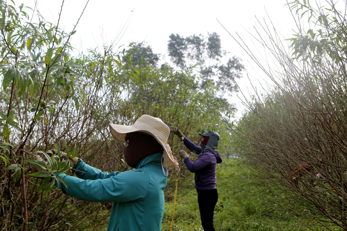 Tết Nguyên đán đang đến gần, các chủ vườn đào, hoa trên địa bàn xã Lưu Vĩnh Sơn (huyệnThạch Hà, tỉnh Hà Tĩnh) đang tất bật chăm sóc, thực hiện những công đoạn cuối cùng để sẵn sàng mang đào xuống phố đón Xuân.