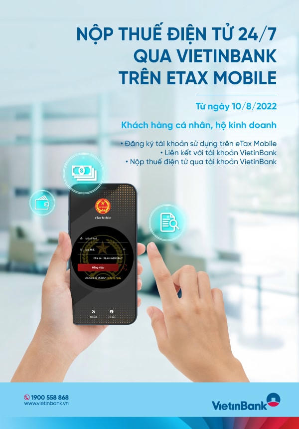 Từ ngày 10/8/2022, khách hàng cá nhân, hộ kinh doanh gia đình có tài khoản/thẻ tại VietinBank có thể nộp thuế điện tử trên ứng dụng eTax Mobile của Tổng cục Thuế.