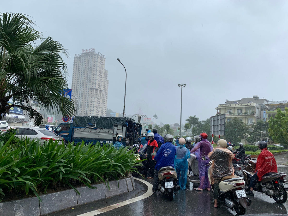Do ảnh hưởng của bão nên trên địa bàn thành phố Hạ Long (Quảng Ninh) có gió to mưa lớn các phương tiện nhất là xe máy di chuyển qua cầu Bãi Cháy gặp nhiều khó khăn.