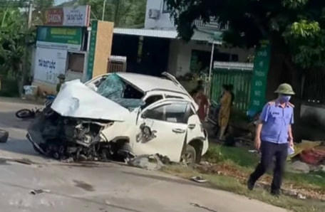 Đang lưu thông với tốc độ cao, ô tô con tông xe máy đi cùng chiều phía trước. Cú va chạm mạnh khiến 2 người đi xe máy tử vong, 5 người trên ô tô con bị thương nặng.