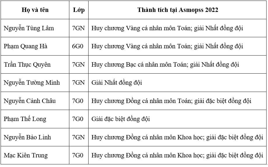 Đoàn Việt Nam tham dự cuộc thi Olympic Toán và Khoa học châu Á năm 2022 ASMOPSS năm nay gồm có 30 học sinh xuất sắc đến từ các trường chuyên và chất lượng cao của thủ đô: THPT Chuyên Amstecdam, THPT Chuyên KHTN, Newton, Nguyễn Siêu,… Vượt qua hàng trăm học sinh trên địa bàn thủ đô, qua các vòng tuyển chọn kĩ lưỡng do Hội Vật lí Việt Nam tổ chức, Trường Newton năm nay có 8 học sinh dự thi và chia thành 2 đội.
