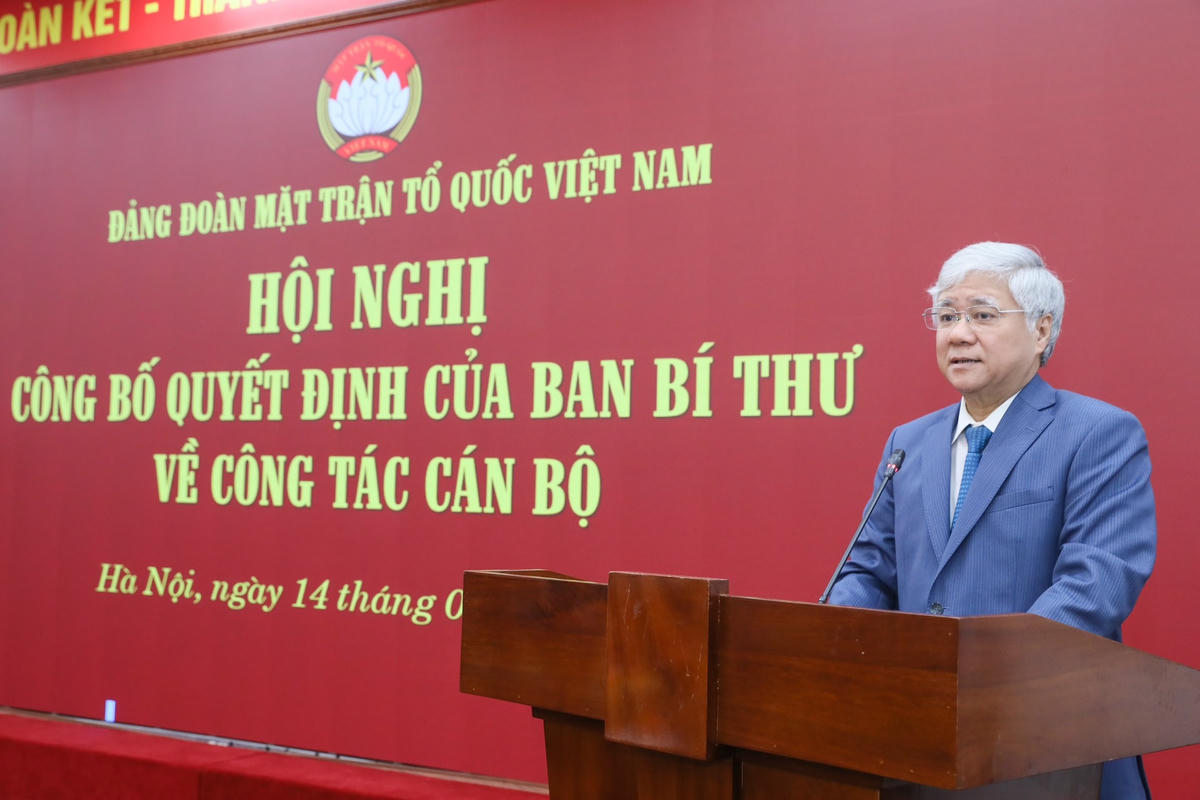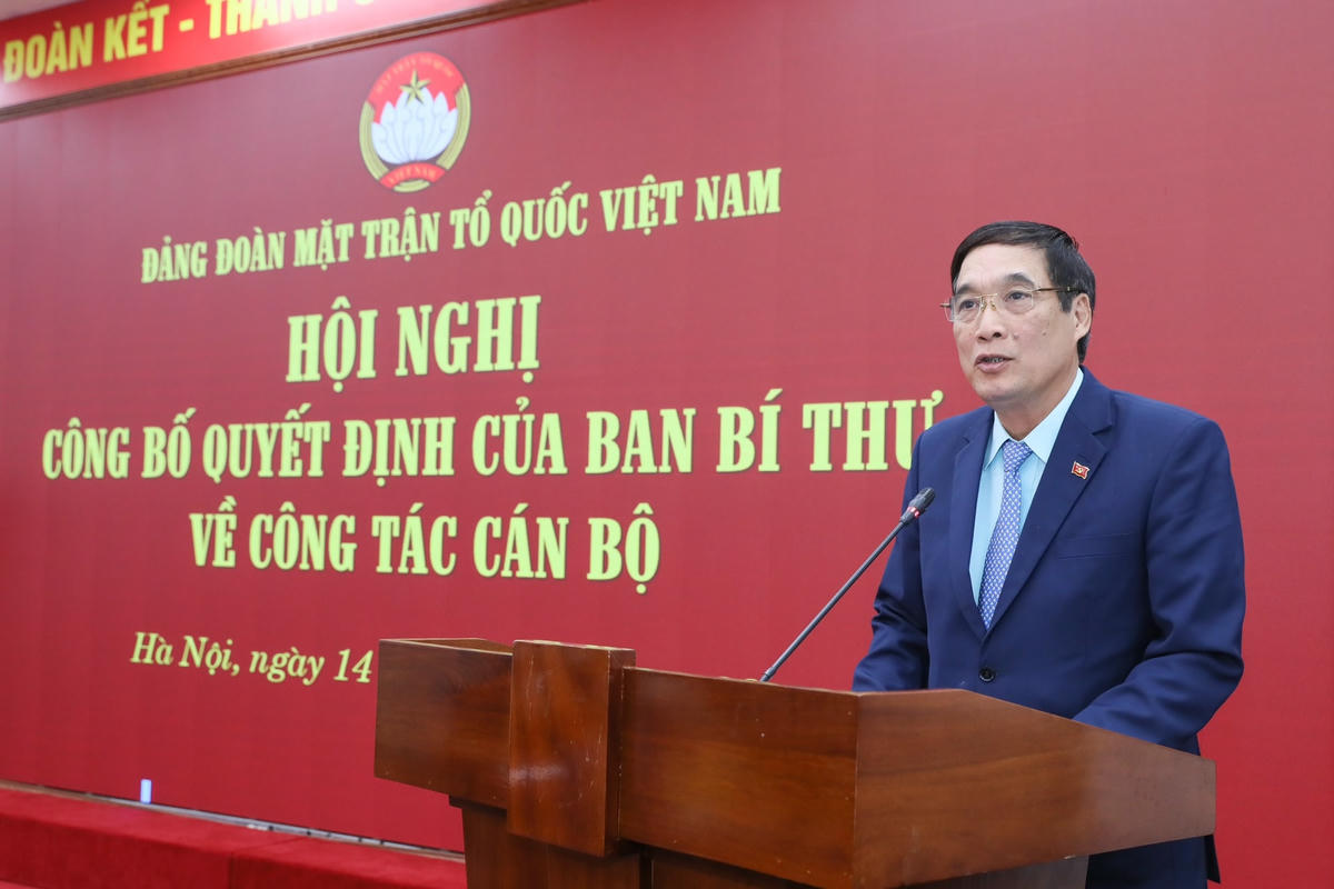 Tại Hội nghị, được sự phân công của Đảng đoàn MTTQ Việt Nam, Phó Chủ tịch UBTƯ MTTQ Việt Nam Phùng Khánh Tài đã công bố Quyết định của Ban Bí thư về công tác cán bộ.