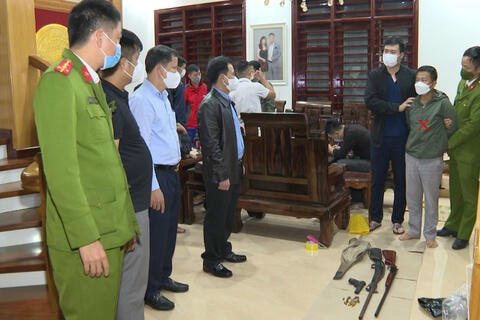 Qua khám xét tại nhà Hùng, Công an TP Thanh Hóa đã thu giữ 1 khẩu súng dạng K54, 1 khẩu súng săm - lếch, 1 khẩu súng bắn đạn ria, 19 viên đạn và nhiều tang vật khác có liên quan.