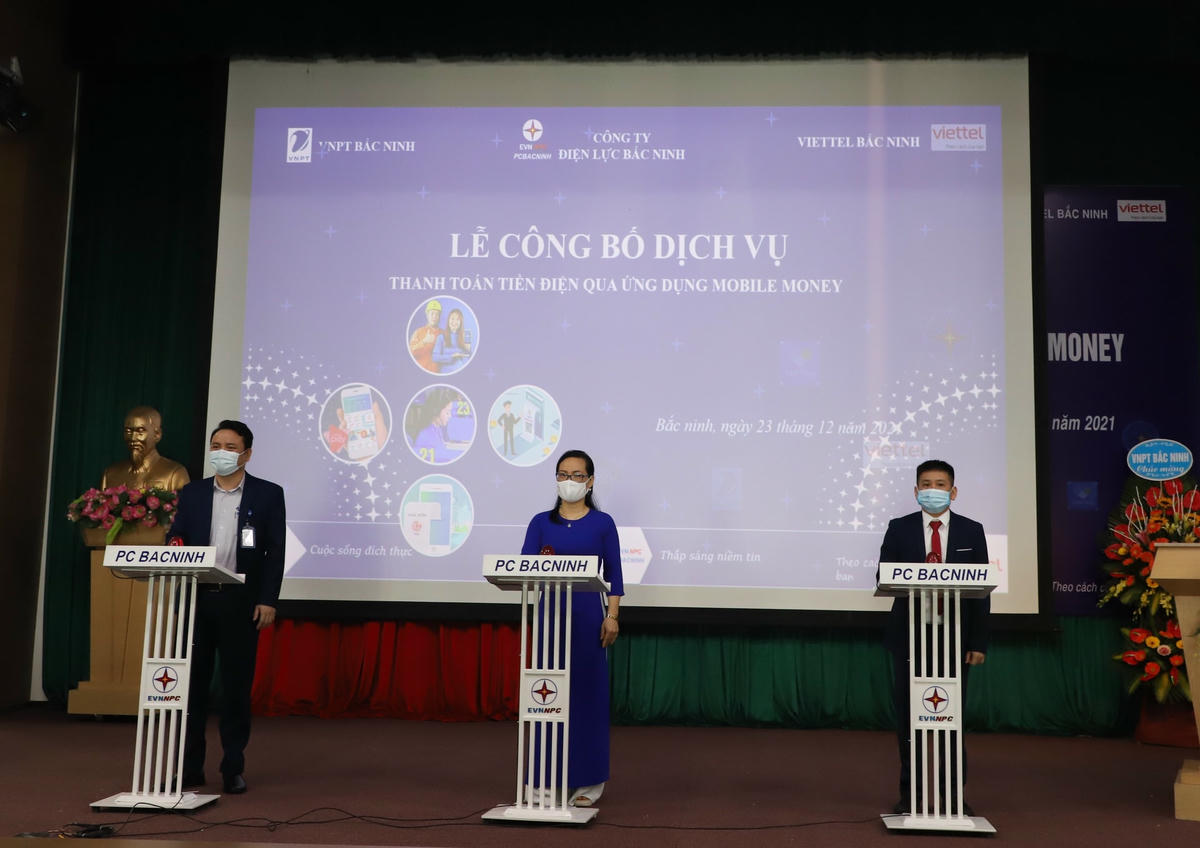 Sáng 23/12/2021, tại thành phố Bắc Ninh, Công ty Điện lực Bắc Ninh phối hợp cùng VNPT Bắc Ninh và Viettel Bắc Ninh tổ chức lễ công bố dịch vụ thu tiền điện qua ứng dụng tiền di dộng (Mobile money). Đây là một dịch vụ mới, một nỗ lực của PC Bắc Ninh để mang thêm cho khách hàng thêm dịch vụ đơn giản, an toàn và tiện lợi theo đúng định hướng của Chính phủ về xây dựng quốc gia số.