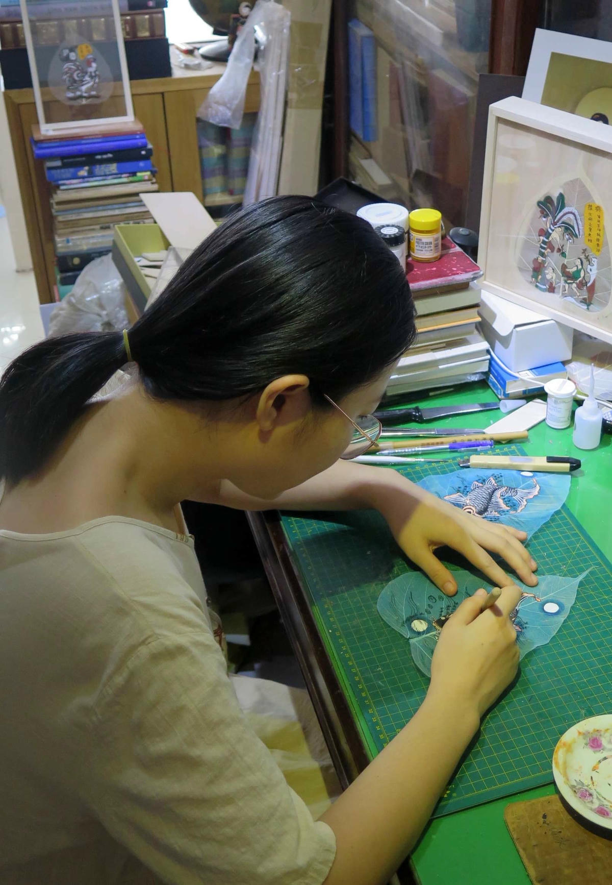 “Vẽ lên lá về cơ bản cũng như vẽ tranh thông thường, dù vậy xương lá là chất liệu mang tính đặc thù bởi có những đường gân lá và những mắt lá rỗng. Điều đó đòi hỏi cần phải có quá trình luyện tập để làm chủ được cọ vẽ. Một hạn chế nữa của vẽ trên xương lá đó là khổ lá giới hạn, vì thế cần tỉ mỉ trong việc thể hiện chi tiết nhỏ”, chị Nhiên thông tin.
