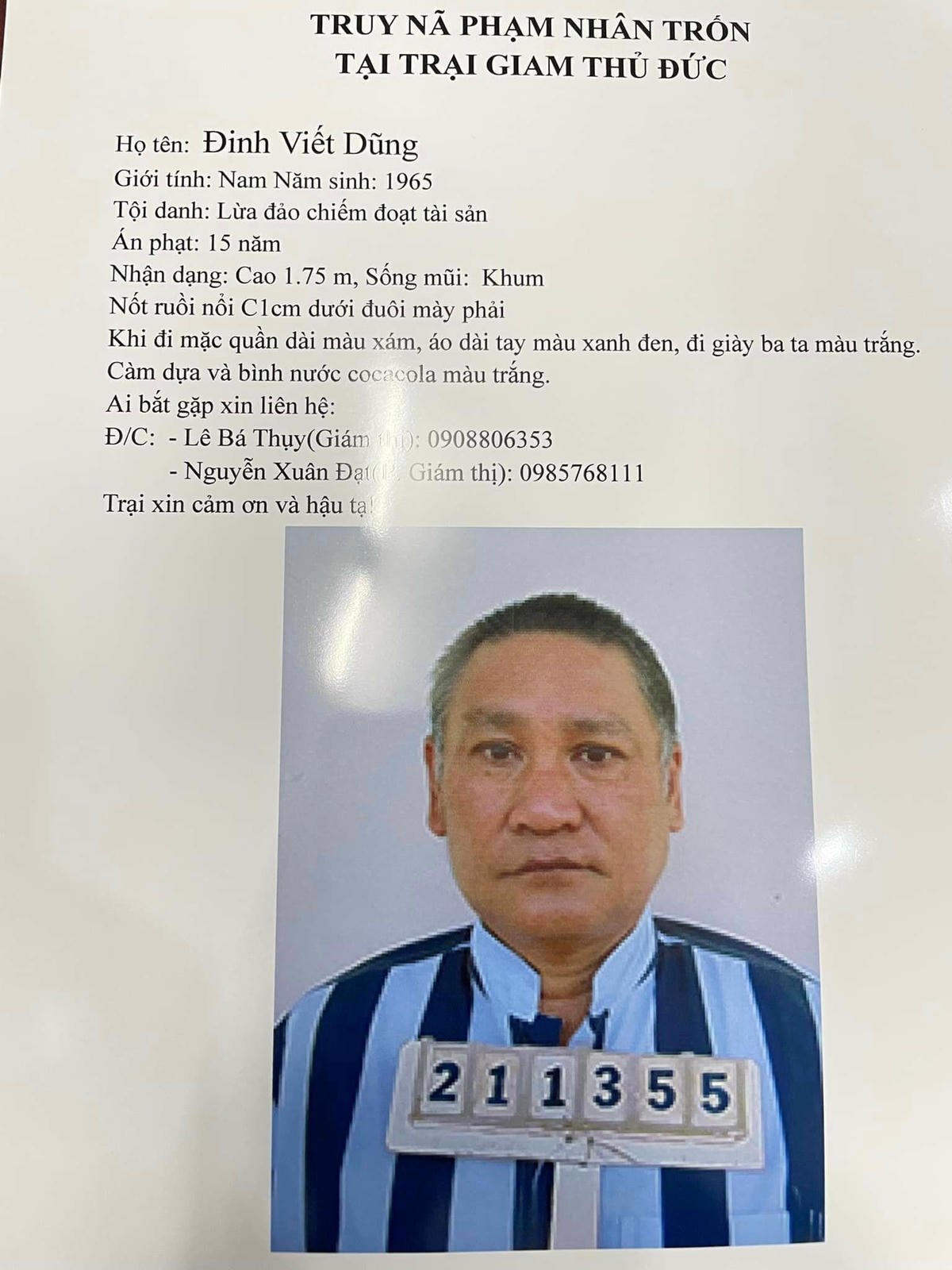 Trước đó, ngày 10/11 khi đang thụ án tại Trại giam Thủ Đức, phạm nhân Đinh Viết Dũng đã bỏ trốn khỏi nơi giam giữ. Cụ thể, phạm nhân đã lợi dụng lúc dược đi vệ sinh khi lao động để trốn vào rừng. Cùng ngày, Trại giam Thủ Đức đã phát lệnh truy nã phạm nhân này.
