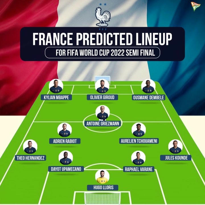 Trái ngược với Morocco, tuyển Pháp không có bất cứ lo ngại nào về chấn thương. Họ sẽ xuất phát với 11 cầu thủ vừa đánh bại tuyển Anh ở tứ kết.