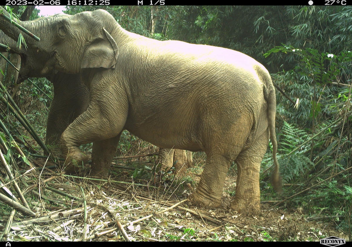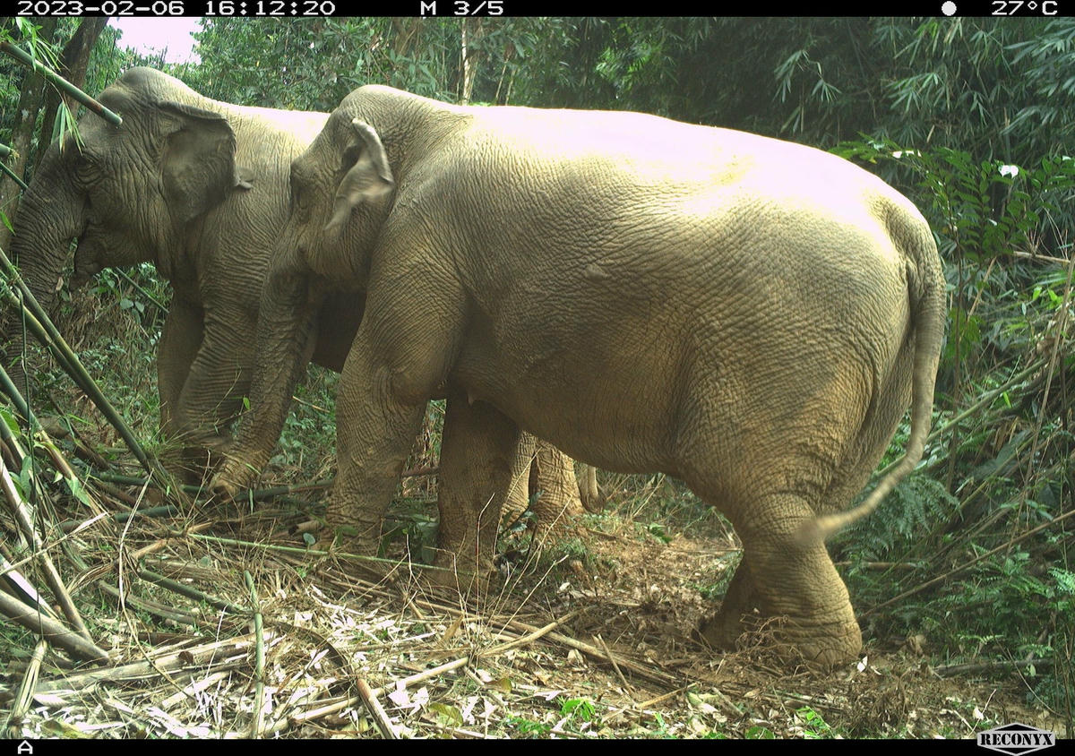 Hai cá thể voi rừng trưởng thành gồm 1 đực và 1 cái vừa được hệ thống bẫy ảnh giám sát đa sinh học ghi lại tại một hòn đảo rộng khoảng 400 ha của hồ Ngàn Trươi.