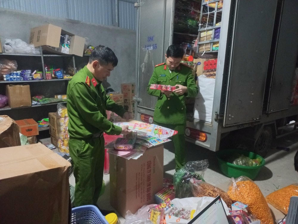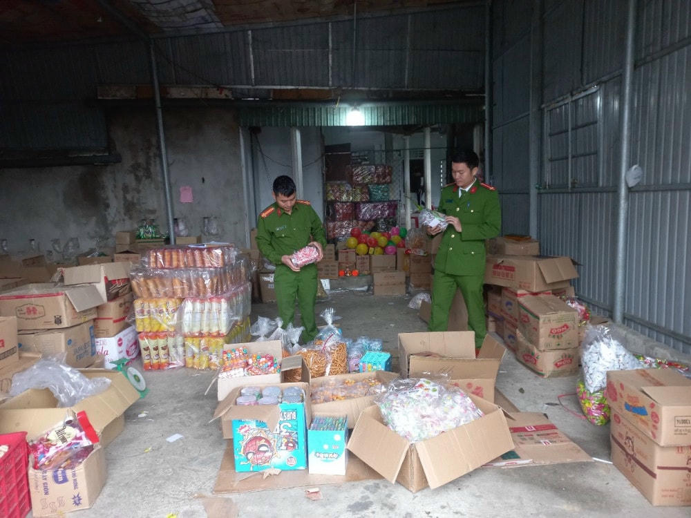 Trước đó, ngày 4/1, Phòng Cảnh sát môi trường Công an tỉnh Hà Tĩnh phối hợp với Công an xã Kỳ Bắc (huyện Kỳ Anh, tỉnh Hà Tĩnh), Công an xã Tân Lâm Hương (huyện Thạch Hà, tỉnh Hà Tĩnh) phát hiện tại 3 hộ kinh doanh hàng hóa thực phẩm bao gồm; hộ anh Trịnh Văn Mại (trú tại thôn Nam Tiến, xã Kỳ Bắc, huyện Kỳ Anh); hộ bà Ngô Thị Hương (trú tại thôn Phương Giai, xã Kỳ Bắc, huyện Kỳ Anh) và hộ anh Lê Văn Anh (trú tại thôn Nhân Hòa, xã Tân Lâm Hương, huyện Thạch Hà) đang tập kết kinh doanh bánh kẹo không rõ nguồn gốc xuất xứ, không đảm bảo các quy định về an toàn thực phẩm.