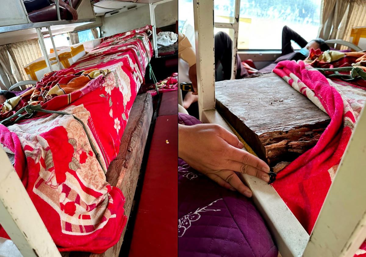 Quá trình kiểm tra, tổ công tác phát hiện, tại lối đi của xe khách có chứa 4 tấm gỗ lớn hình chữ nhật được buộc dây và phủ chăn che kín, ước tính khối lượng khoảng 1,5 m3.