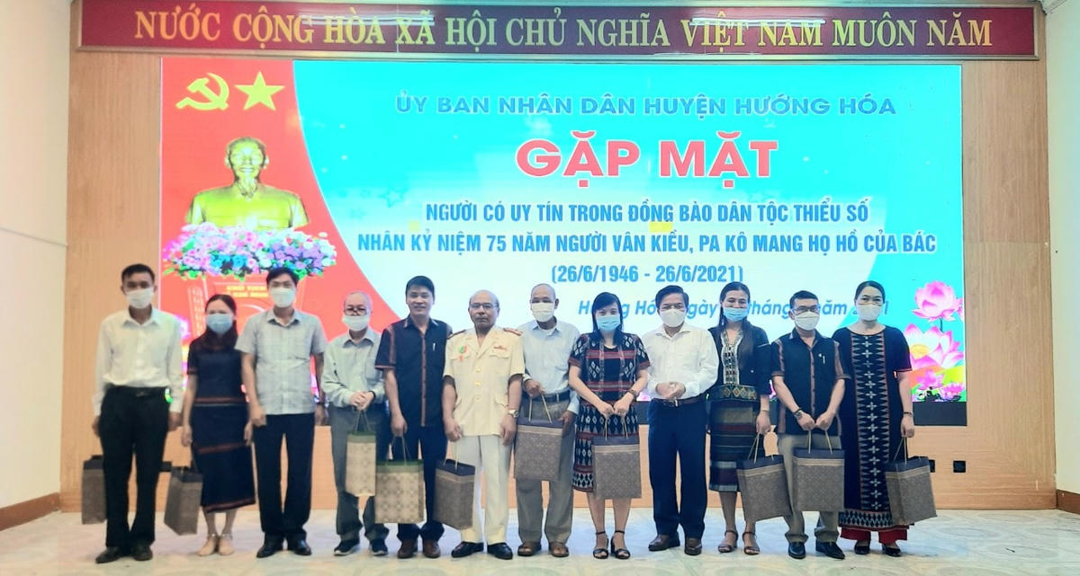 Ngày 26/6, huyện Hướng Hoá, tỉnh Quảng Trị tổ chức gặp mặt người có uy tín trong đồng bào dân tộc thiểu số trên địa bàn, nhân kỷ niệm 75 năm người đồng bào Vân Kiều, Pa Kô mang họ Hồ của Bác (26/6/1946 - 26/6/2021).