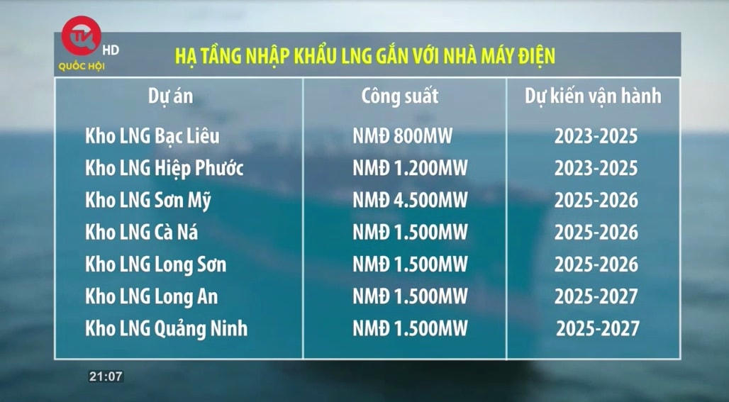 1. Kho LNG Cà Ná (Ninh Thuận) giai đoạn 1 công suất khoảng 1500 MW, tiến độ vận hành năm 2025-2026.