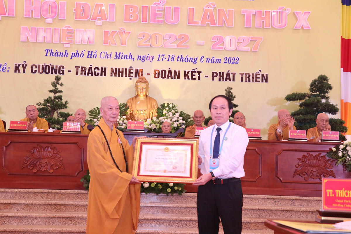 Dịp này, được sự ủy quyền, ông Lê Tiến Châu, đã trao Huân chương Độc lập hạng Nhất của Chủ tịch nước cho Hòa thượng Thích Trí Quảng, Quyền Pháp chủ Hội đồng GHPG Việt Nam, nguyên Trưởng Ban Trị sự GHPG Việt Nam TP HCM.