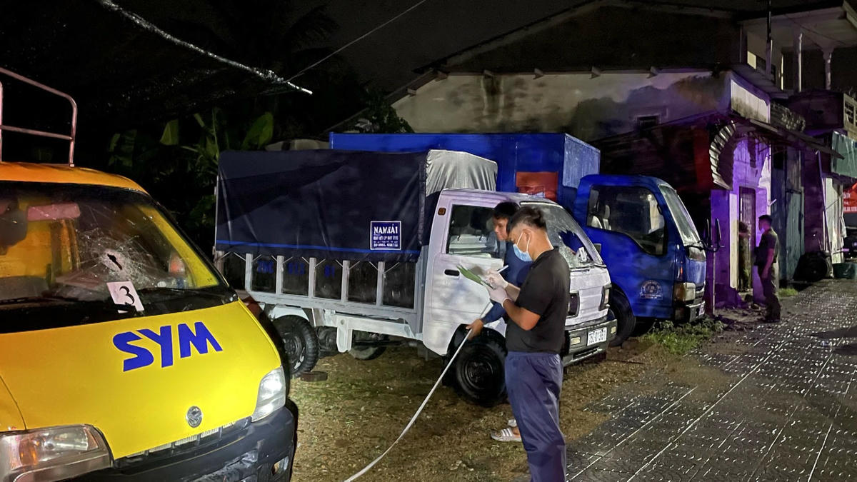 Tại đây, Tuấn dùng búa đập vỡ kính chắn gió phía trước của 3 xe ô tô tải và kính phía sau của 3 xe ô tô con. Sau đó, Tuấn tiếp tục sử dụng búa và gạch đập vỡ kính nhà 2 hộ dân khác.