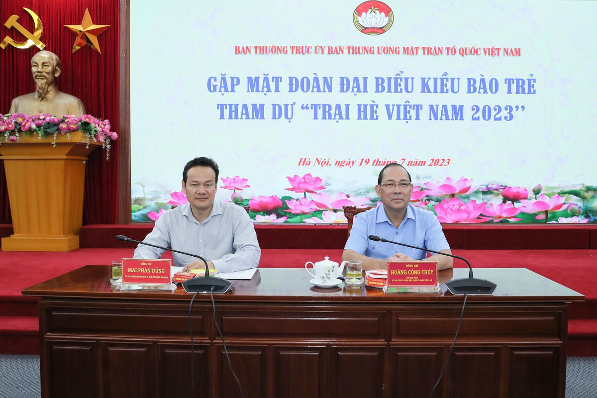 Ngày 19/7, tại Hà Nội, Ban Thường trực UBTƯ MTTQ Việt Nam đã tổ chức gặp mặt Đoàn đại biểu kiều bào trẻ tham dự "Trại hè Việt Nam 2023". Ông Hoàng Công Thủy, Phó Chủ tịch UBTƯ MTTQ Việt Nam dự và phát biểu tại buổi gặp mặt.