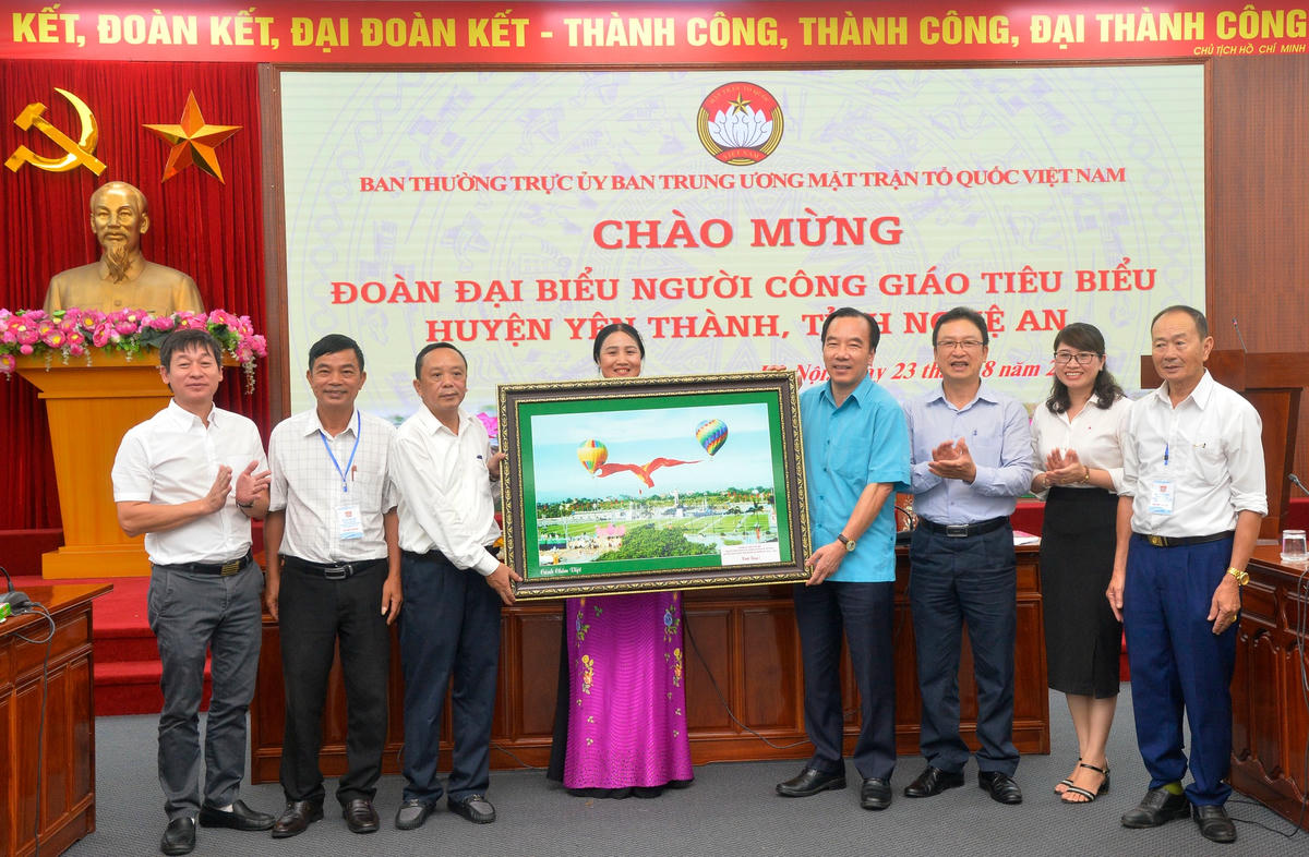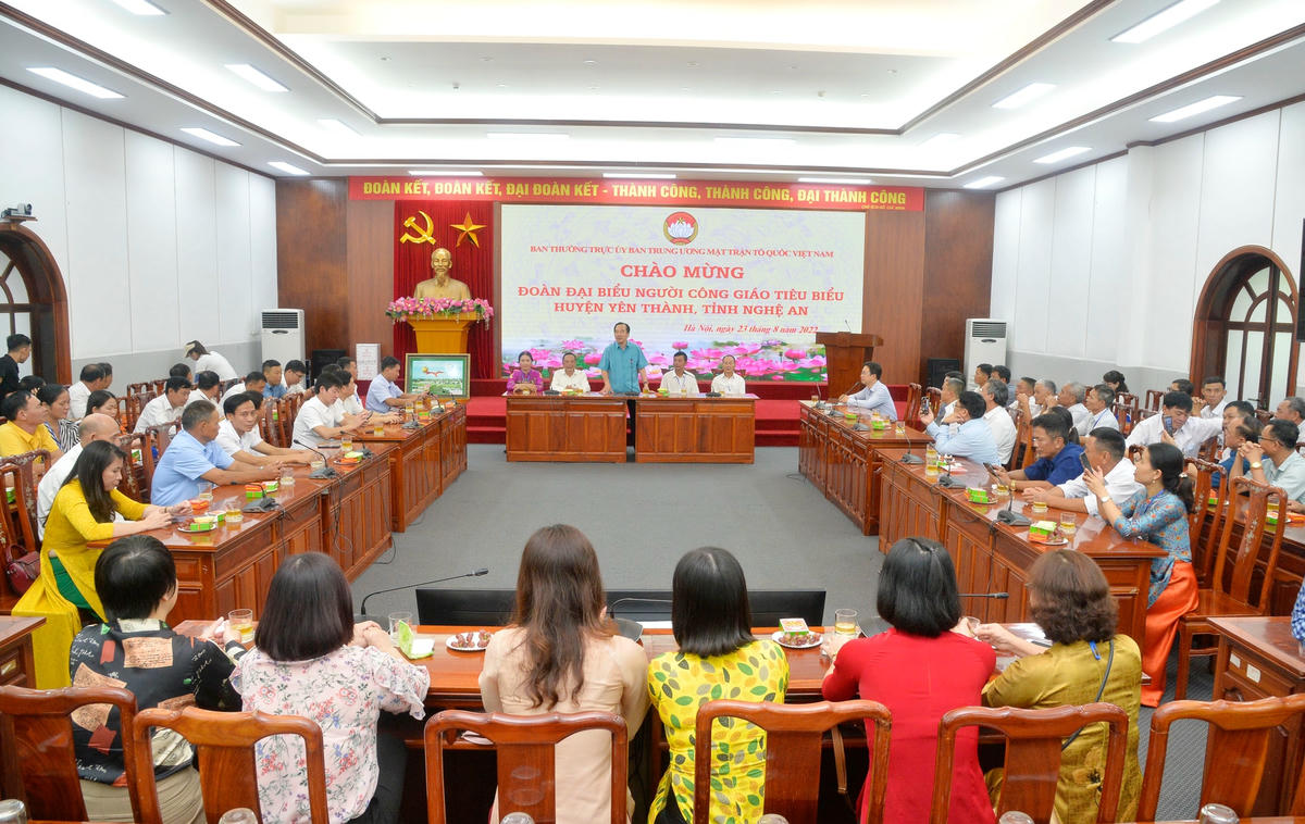 Ngày 23/8, tại Hà Nội, Phó Chủ tịch UBTƯ MTTQ Việt Nam Ngô Sách Thực đã thân mật tiếp đoàn đại biểu người công giáo tiêu biểu huyện Yên Thành, tỉnh Nghệ An tới chào thăm cơ quan UBTƯ MTTQ Việt Nam.