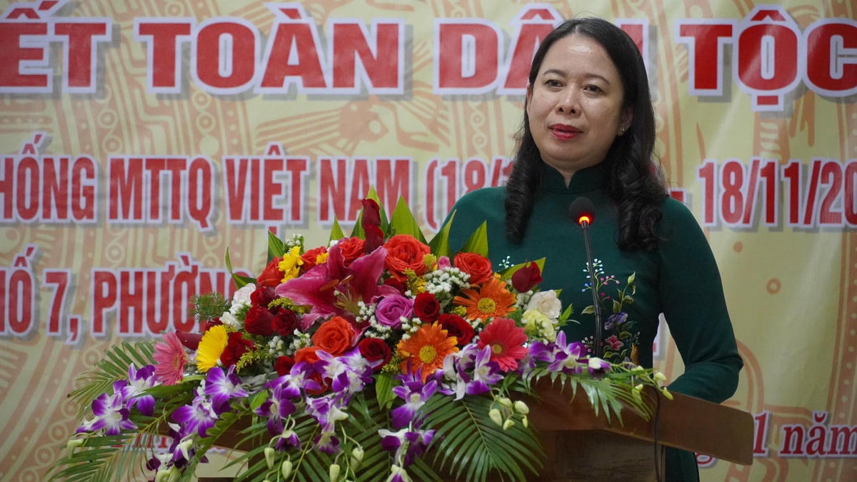 Nhân kỷ niệm 91 năm Ngày thành lập Mặt trận Dân tộc thống nhất Việt Nam - Ngày truyền thống MTTQ Việt Nam (18/11/1930-18/11/2021), chiều 15/11, Phó Chủ tịch nước Võ Thị Ánh Xuân đã về dự và chung vui Ngày hội Đại đoàn kết toàn dân tộc với bà con nhân dân khu phố 7, Phường 3, thị xã Quảng Trị, tỉnh Quảng Trị.