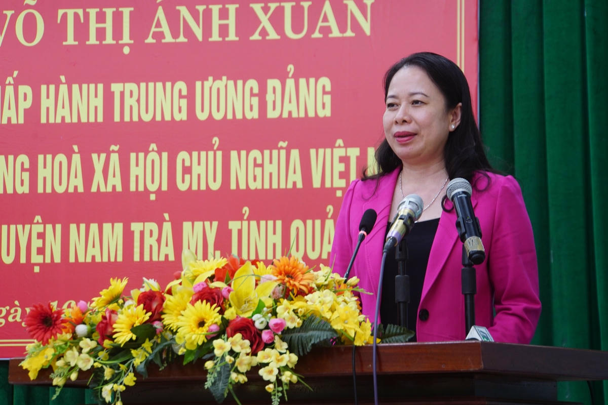 Phát biểu tại buổi làm việc, Phó Chủ tịch nước Võ Thị Ánh Xuân nói: “Trước hết tôi xin chuyển lời thăm hỏi, ân cần, sự quan tâm sâu sắc, tình cảm tốt đẹp nhất của Chủ tịch nước Nguyễn Xuân Phúc đến Đảng bộ, nhân dân tỉnh Quảng Nam cũng như huyện Nam Trà My.