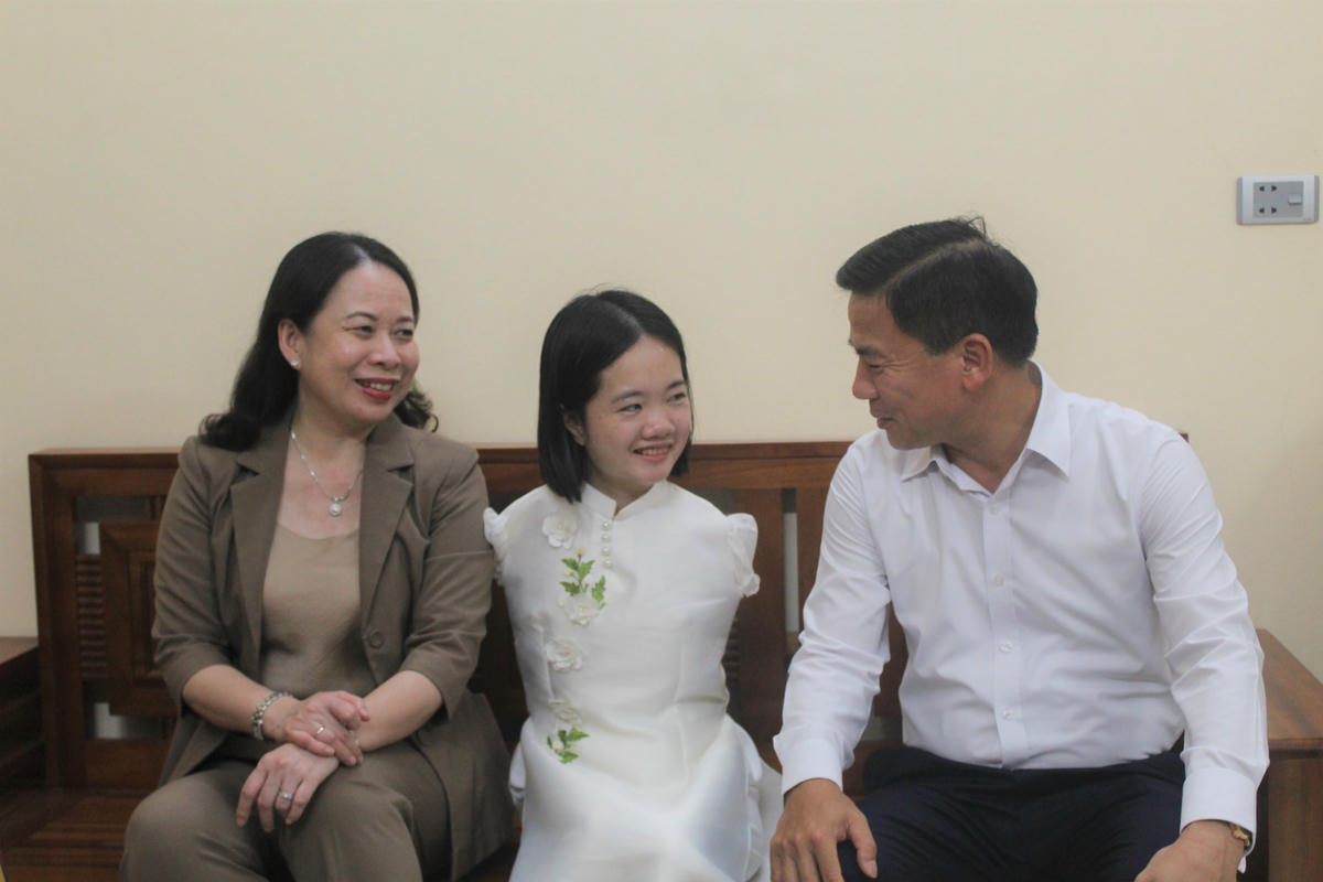 Sau khi lắng nghe những chia sẻ của cô giáo Thắm về hành trình từ lúc mới lọt lòng mẹ cho đến ngày hôm nay, khi đã trở thành một giáo viên chính thức và đứng trên bục giảng, Phó Chủ tịch nước Võ Thị Ánh Xuân bày tỏ niềm xúc động trước những nỗ lực phi thường của cô giáo Thắm. Phó Chủ tịch nước cho rằng, cô giáo Thắm là minh chứng tiêu biểu cho truyền thống hiếu học, nghị lực vượt lên số phận.